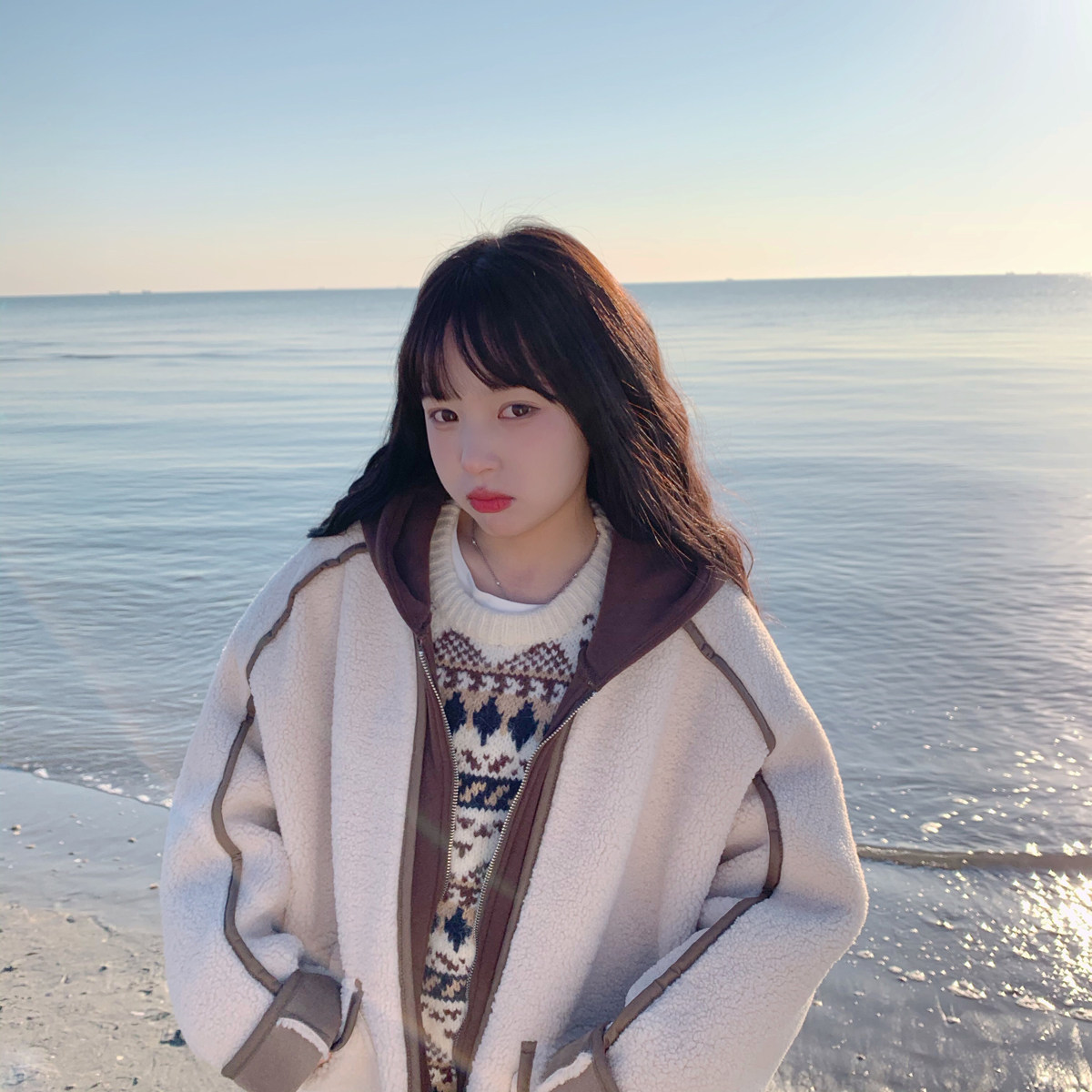 [Spot] Yukixiaoshu домашнее сопоставление цвета показало, что белый ягненка подделка на две утолщенные плюшевые хлопковые женщины с капюшоном