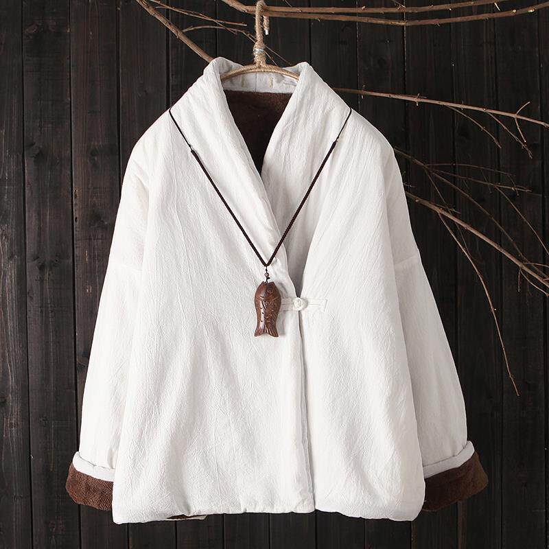 Стеганый короткий ретро пуховик, этническая куртка, из хлопка и льна, увеличенная толщина