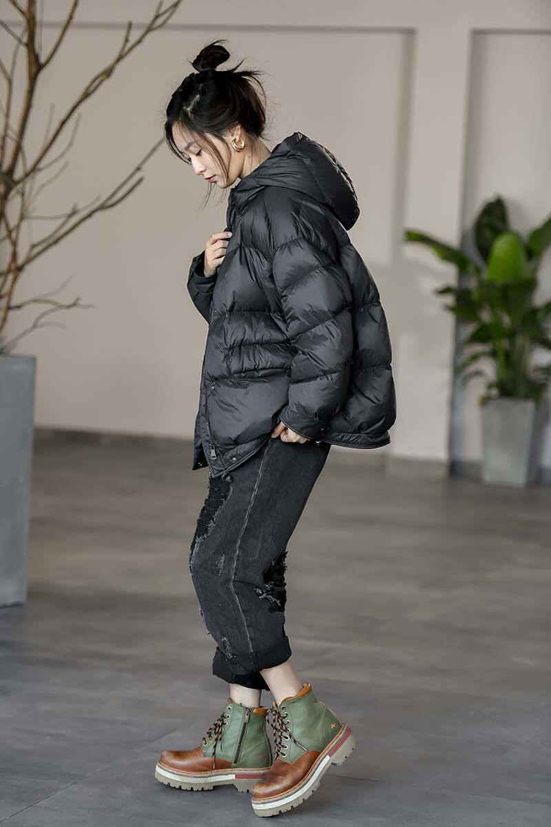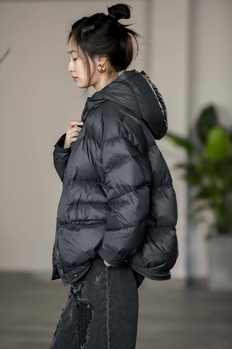 Осенняя демисезонная короткая толстовка с капюшоном с пухом, пуховик, куртка, оверсайз, увеличенная толщина