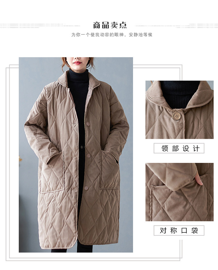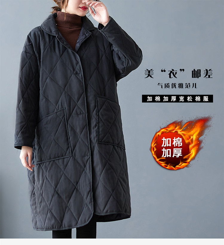 Зимний длинный стеганый пуховик с ромбовидным узором с пухом, средней длины, свободный крой, большой размер, увеличенная толщина