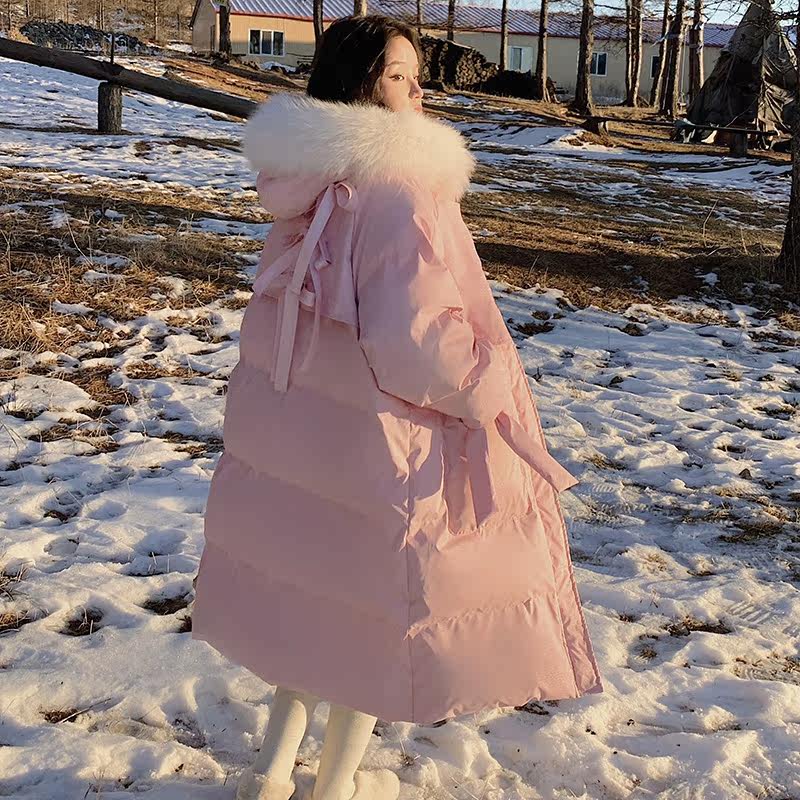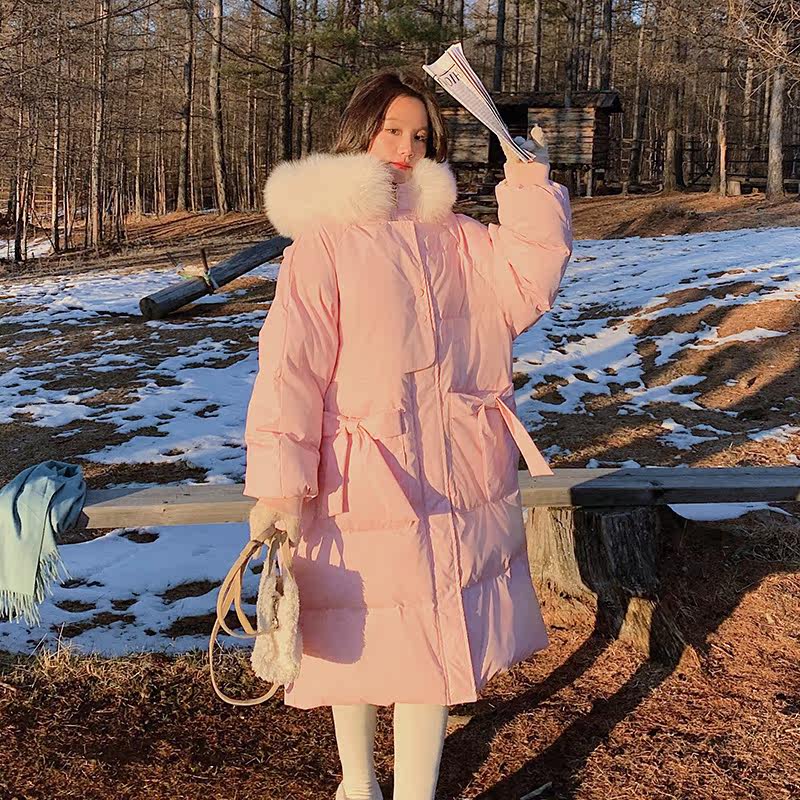 Розовый длинный пуховик с пухом, зимняя куртка, набивка пером, средней длины, 2021 года