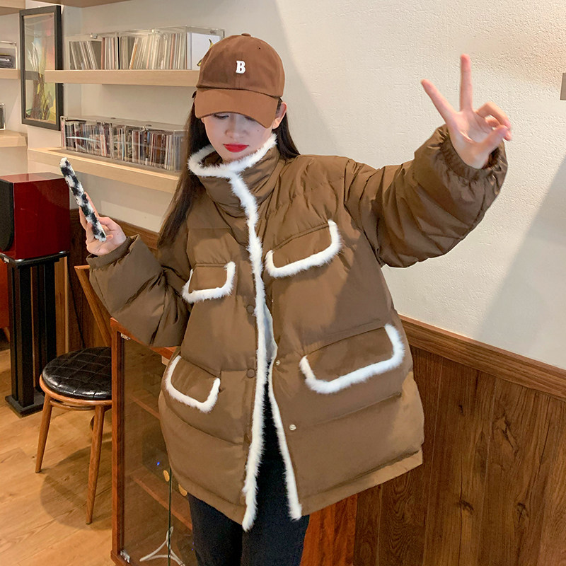 Пуховик, куртка, дизайнерские модные джинсы с начесом, лонгслив, в корейском стиле, коллекция 2021, тренд сезона
