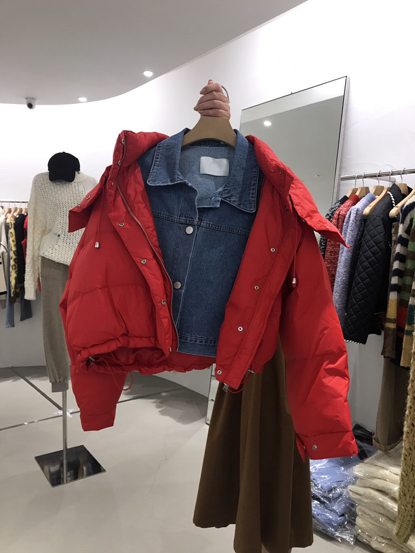 Южнокорейский зимний товар, джинсовый короткий комплект с капюшоном, пуховик, куртка, коллекция 2021