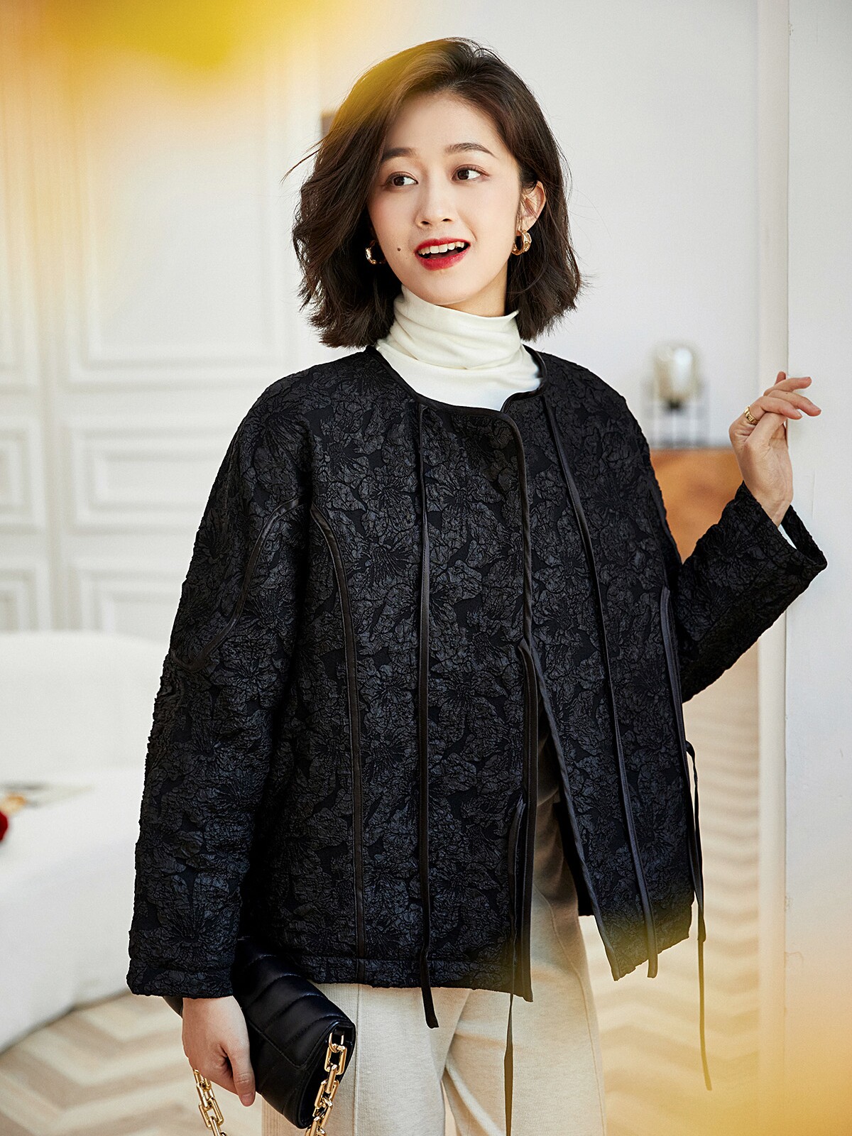 Черная стеганая куртка, в стиле Шанель, китайский стиль