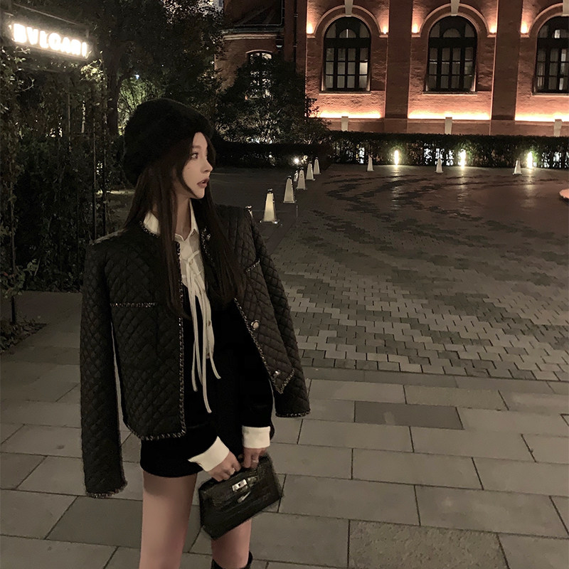 Цепь с ромбовидным узором, зимний удерживающий тепло пуховик, универсальная куртка, по фигуре, в стиле Шанель