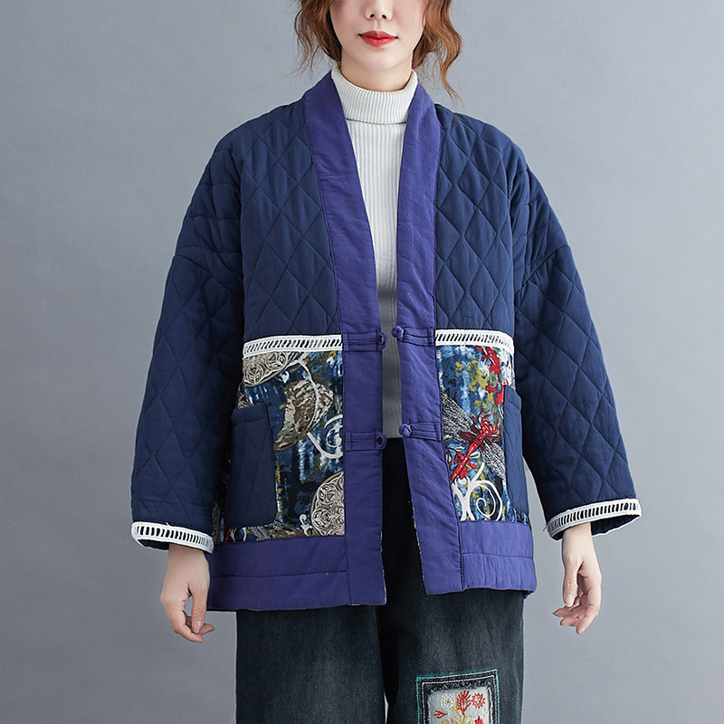 Этнический пуховик, ретро зимняя стеганая куртка, этнический стиль, из хлопка и льна, большой размер, увеличенная толщина