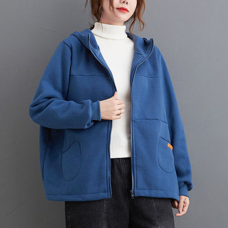 Толстовка с капюшоном, кардиган, короткая куртка для отдыха, утепленная толстовка, Италия, большой размер