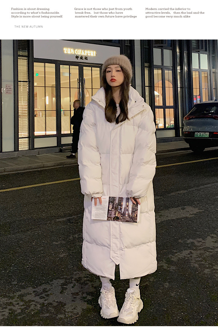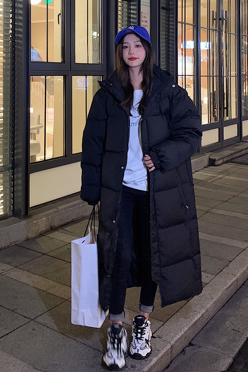 Длинный модный пуховик с пухом, трендовая удерживающая тепло куртка, длина макси, в корейском стиле, свободный крой