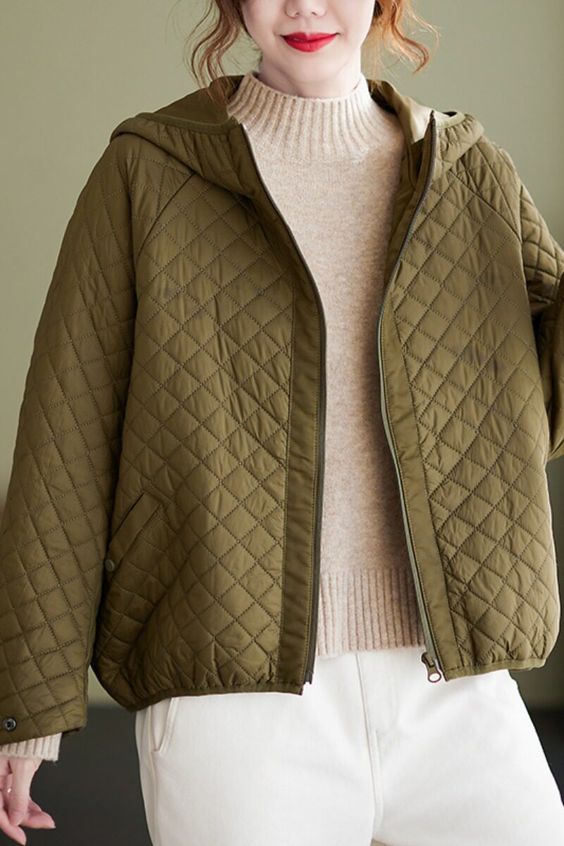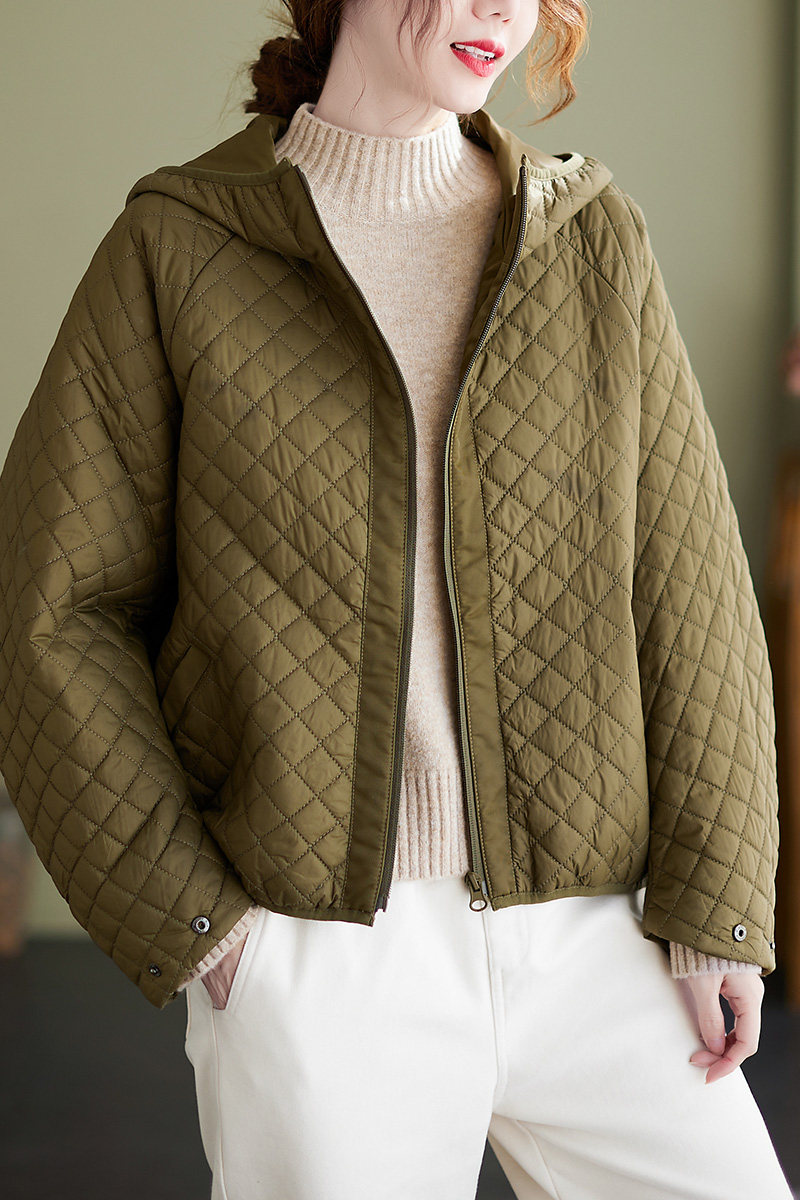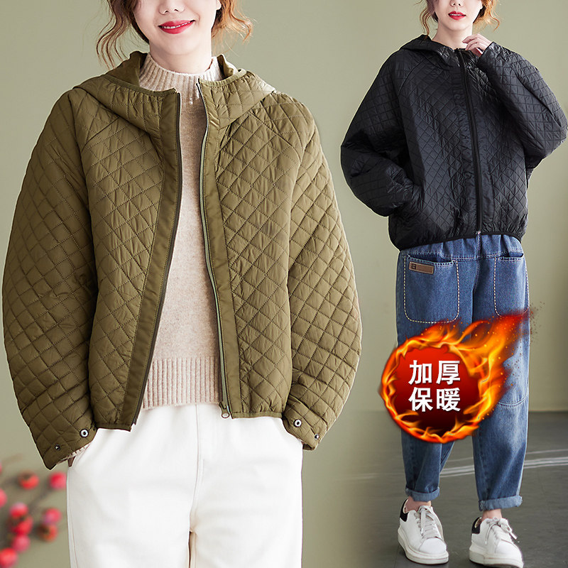 Короткий демисезонный пуховик с ромбовидным узором, легкая и тонкая толстовка с капюшоном, коллекция 2023, в корейском стиле, большой размер, оверсайз, увеличенная толщина
