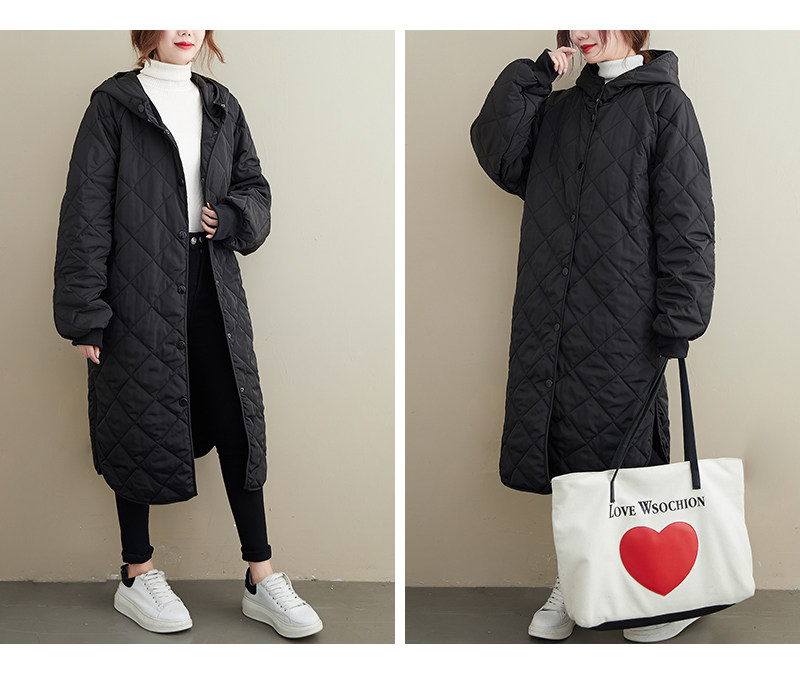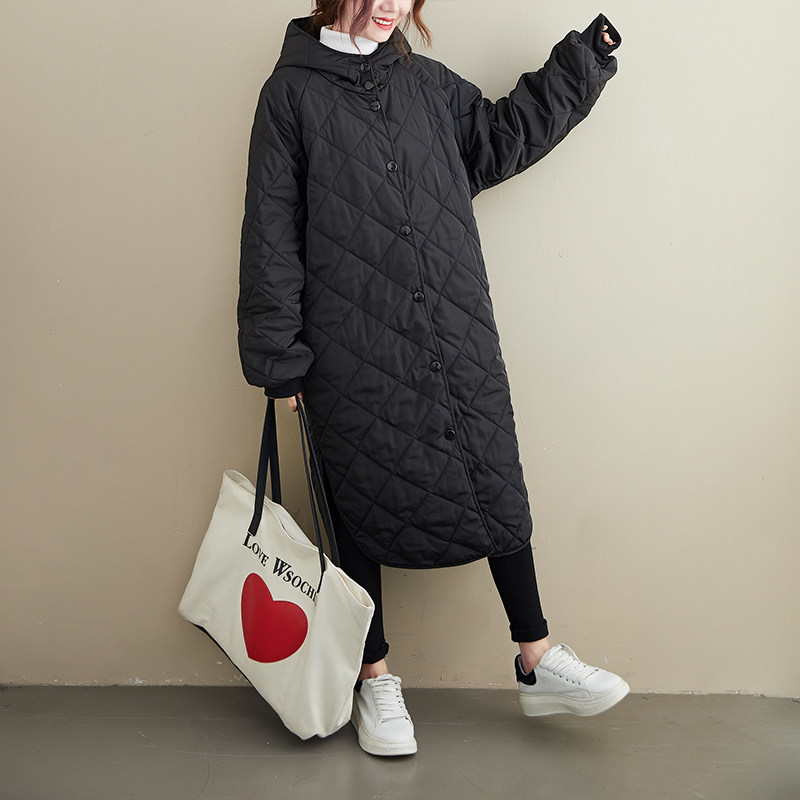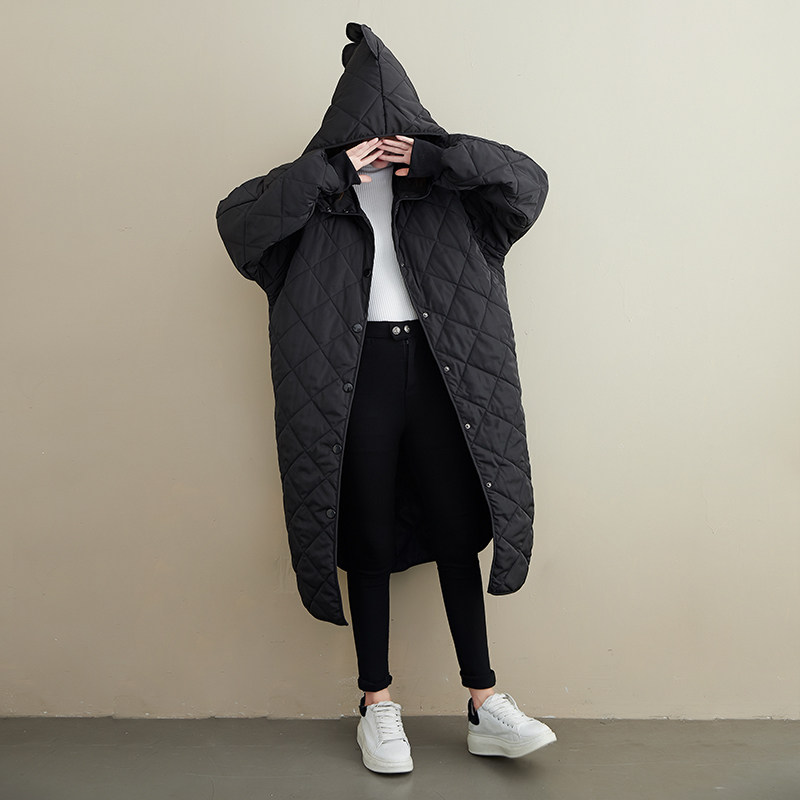 Сверхдлинный длинный пуховик, длинная толстовка с капюшоном с ромбовидным узором, 2023, оверсайз, увеличенная толщина