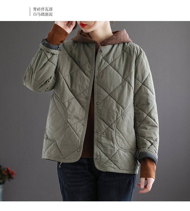 Демисезонная куртка для отдыха с ромбовидным узором, стеганые джинсы с начесом, короткий пуховик, большой размер, оверсайз