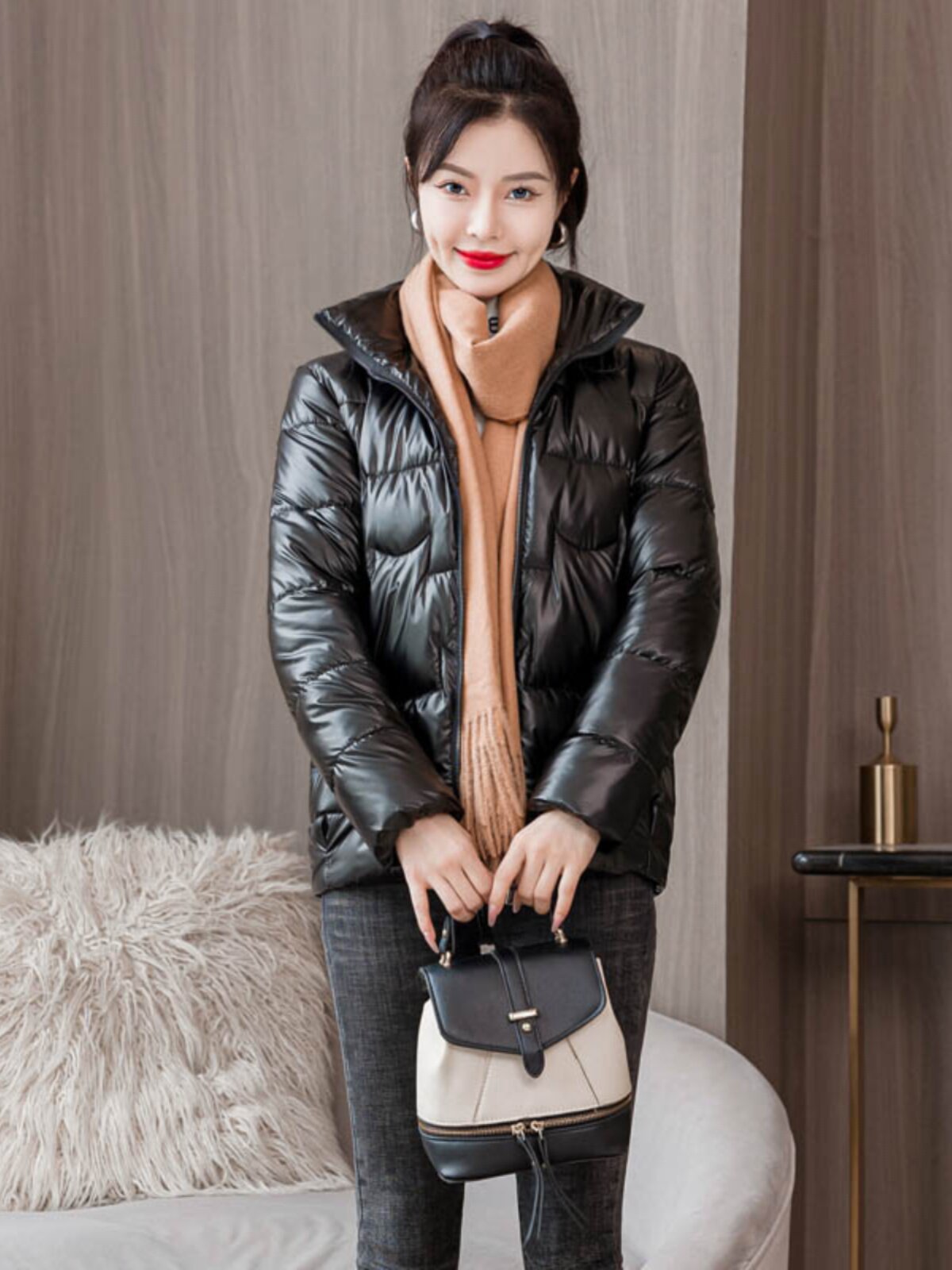 Зимняя глянцевая короткая куртка, пуховик с пухом, в корейском стиле, увеличенная толщина