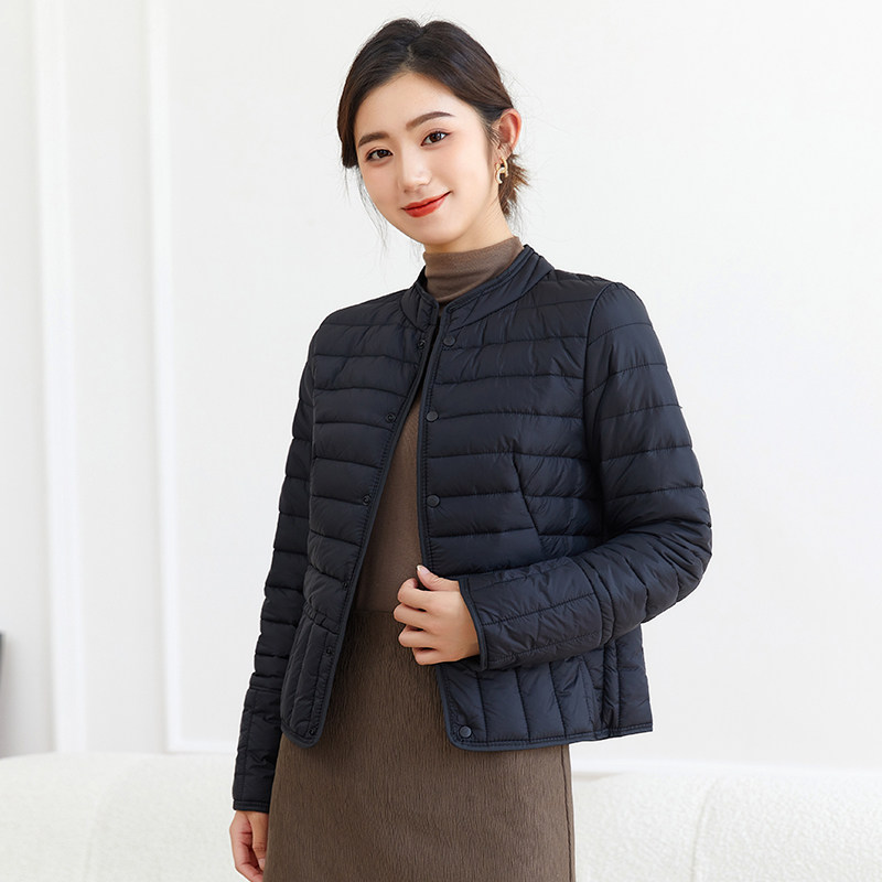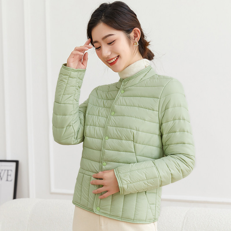 Демисезонный легкий и тонкий пуховик с пухом, удерживающая тепло базовая куртка, высокий воротник, облегающий крой