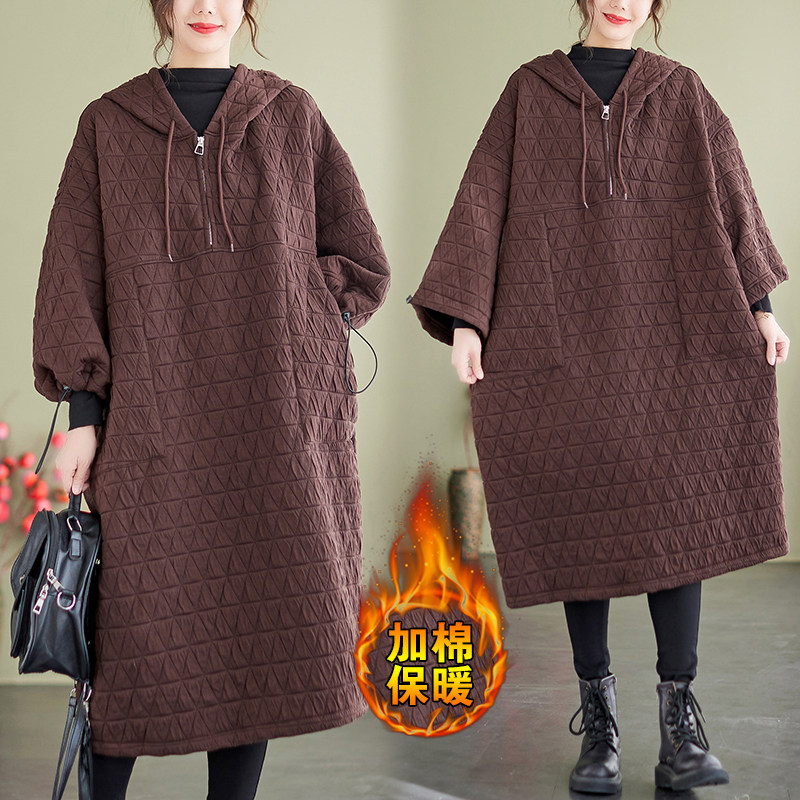 Зимний стеганый пуховик, платье, юбка, толстовка с капюшоном, большой размер, оверсайз, увеличенная толщина, в западном стиле