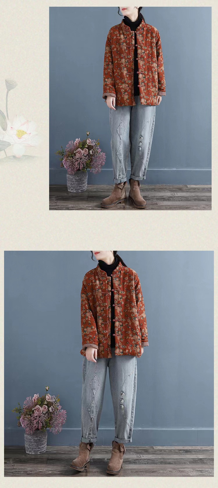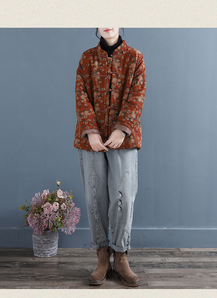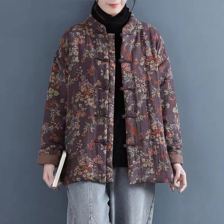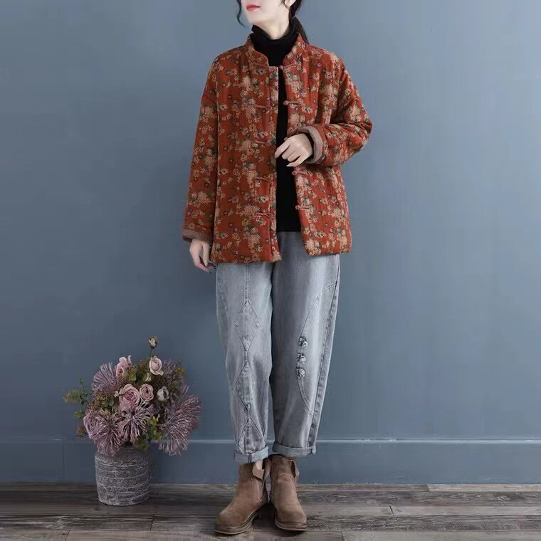 Брендовый демисезонный стеганый пуховик, куртка, цветочный принт, увеличенная толщина