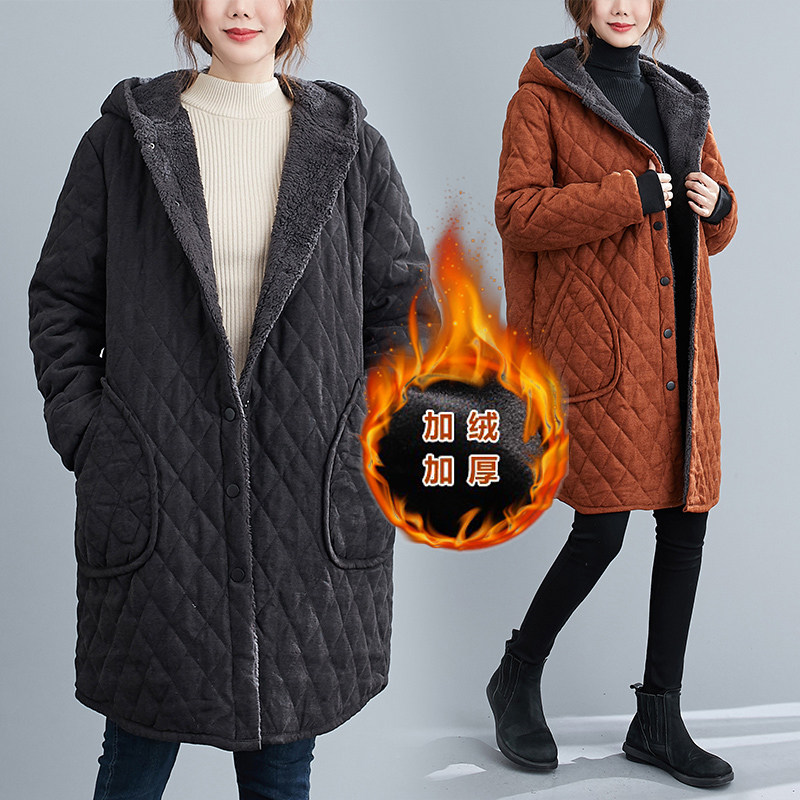 Зимние джинсы с начесом, пуховик, куртка, длинная толстовка с капюшоном, большой размер, средней длины