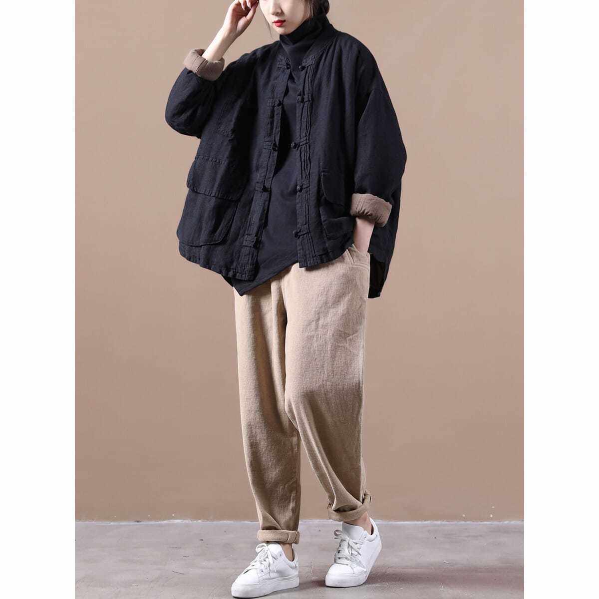 Брендовая демисезонная куртка, оверсайз, из хлопка и льна