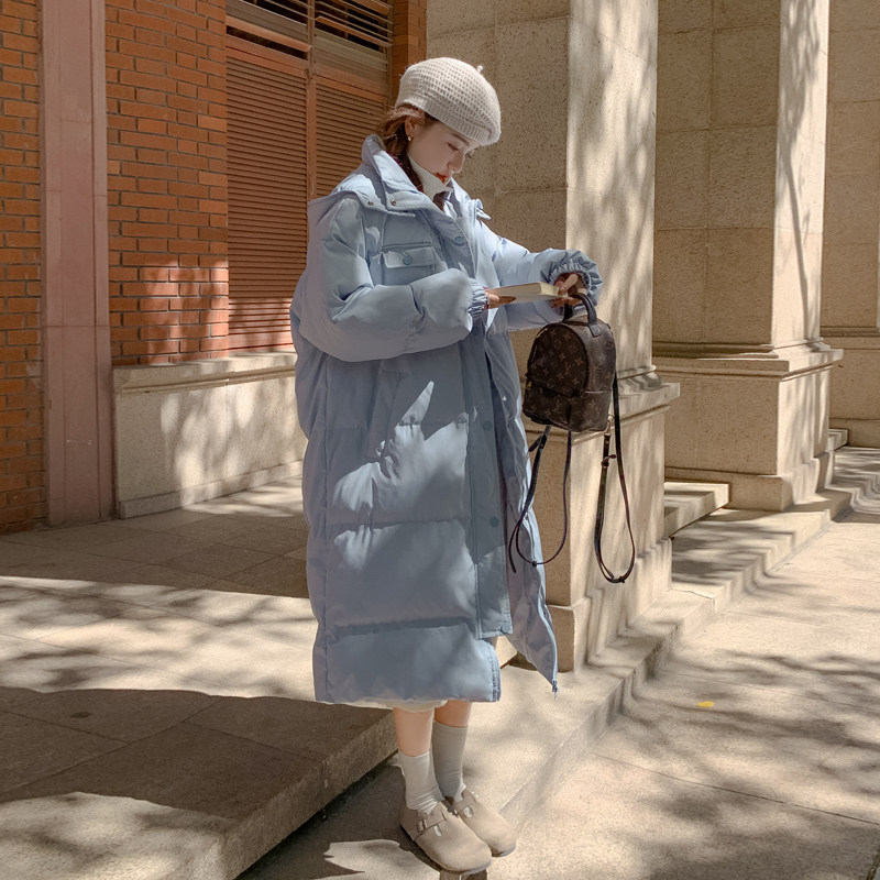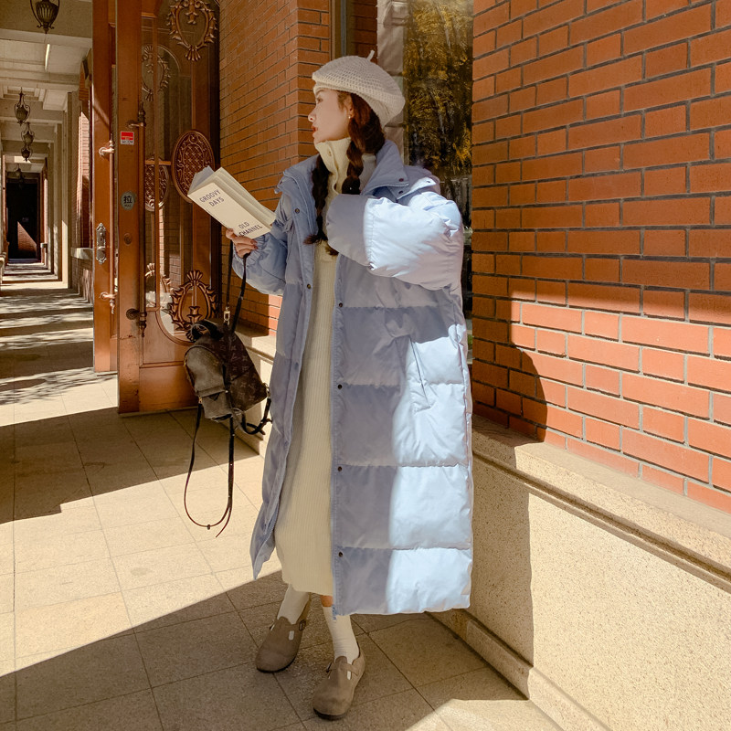 Синий зимний пуховик с пухом, длинная куртка для школьников, 2022, средней длины, свободный крой