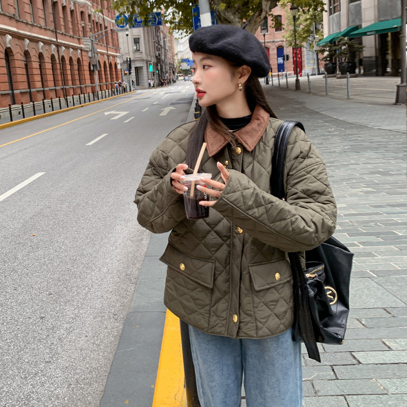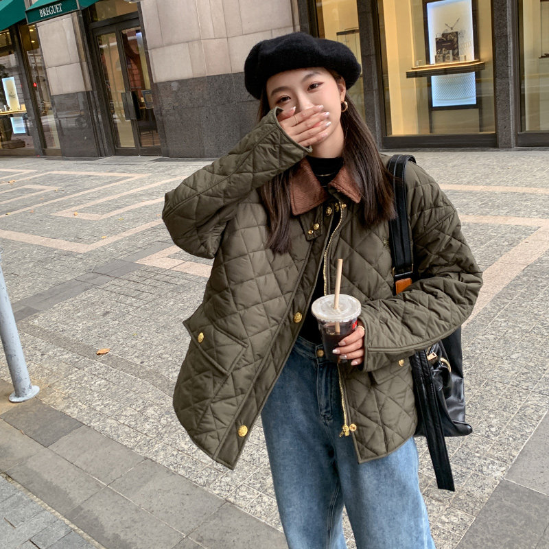 Зеленый зимний пуховик с ромбовидным узором с пухом, модная легкая и тонкая куртка, 2023, в корейском стиле