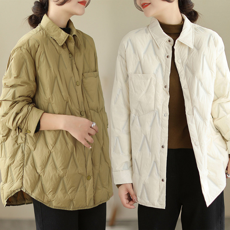 Модная стеганая демисезонная рубашка с ромбовидным узором, куртка, японский пуховик, большой размер, свободный крой