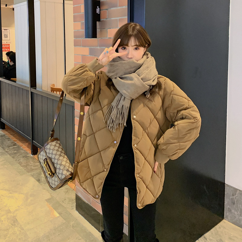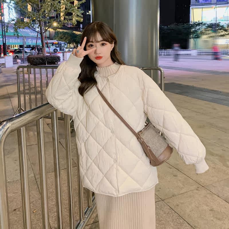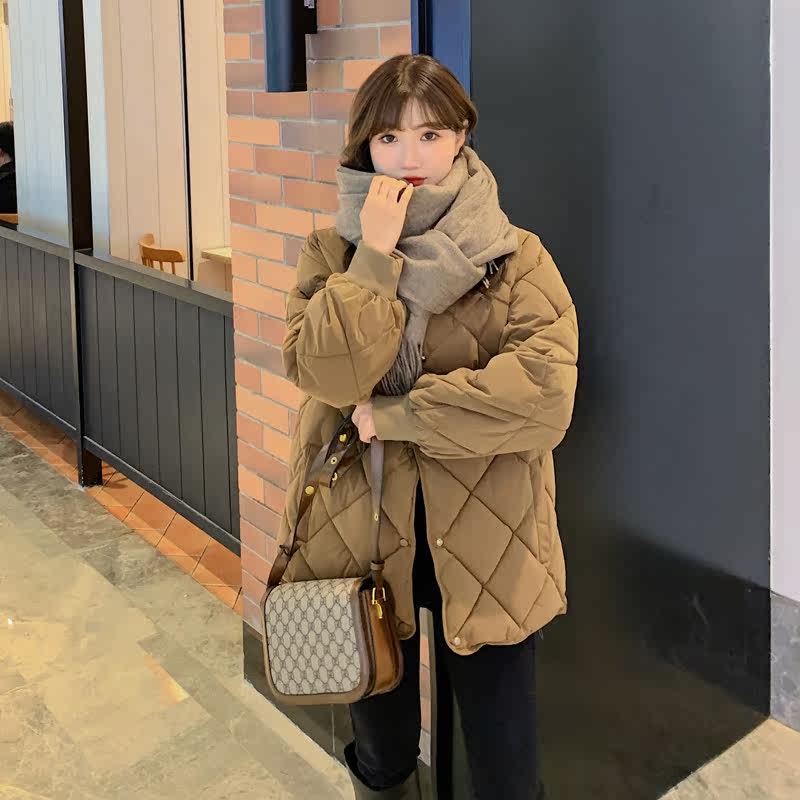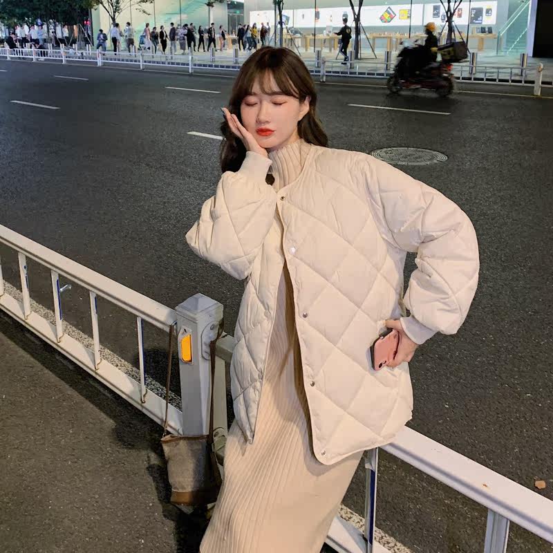 Бежевый легкий и тонкий зимний пуховик с ромбовидным узором, куртка, в корейском стиле, свободный крой