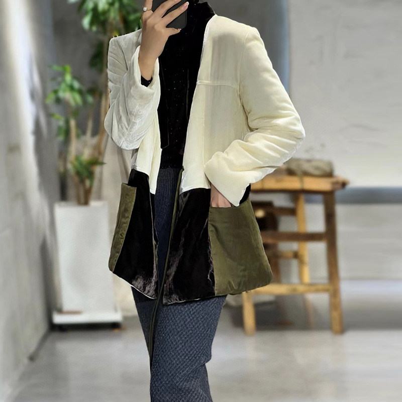 Шелковая бархатная стеганая куртка, пуховик, увеличенная толщина, китайский стиль
