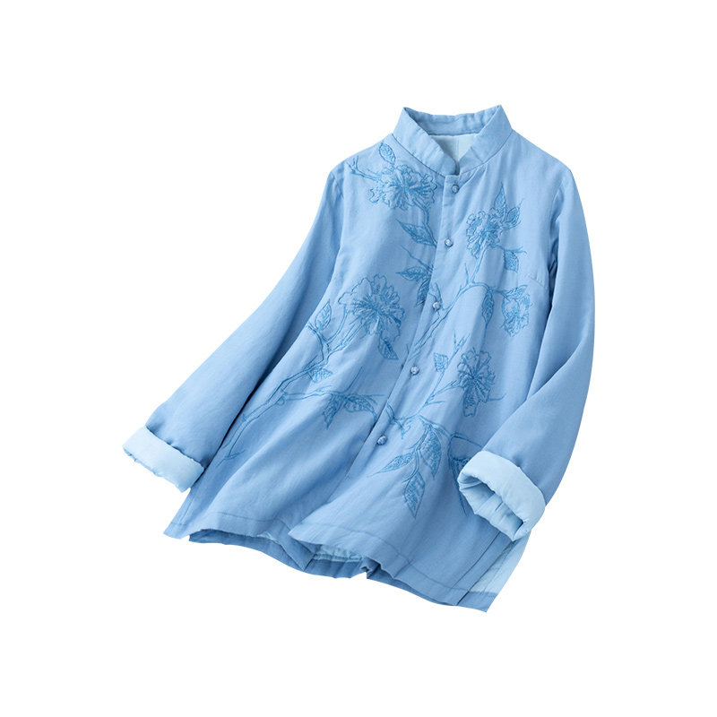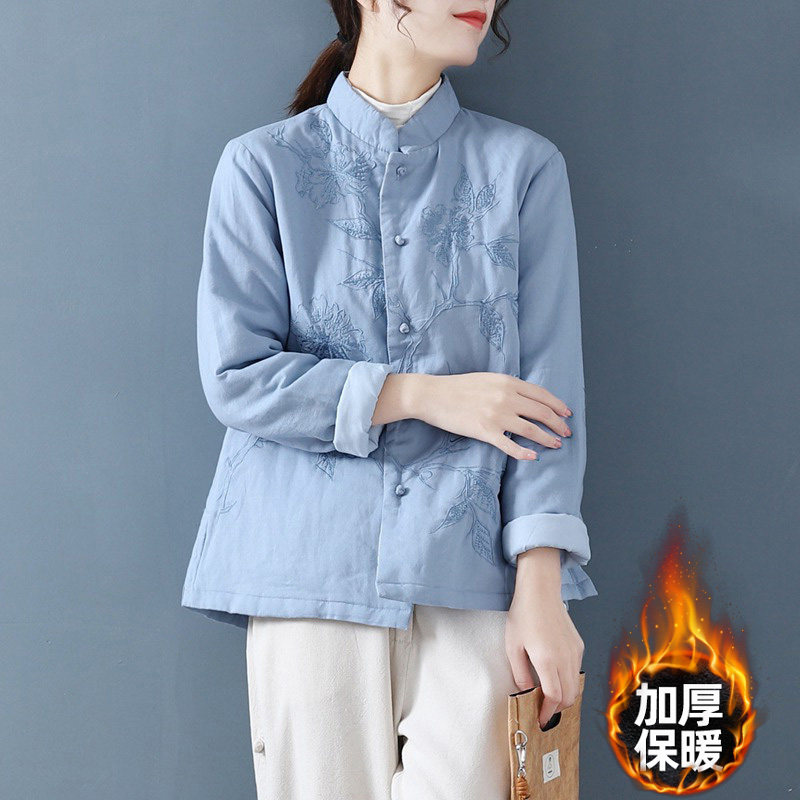 Брендовая ретро стеганая рубашка, пуховик, куртка, китайский стиль, с вышивкой, из хлопка и льна