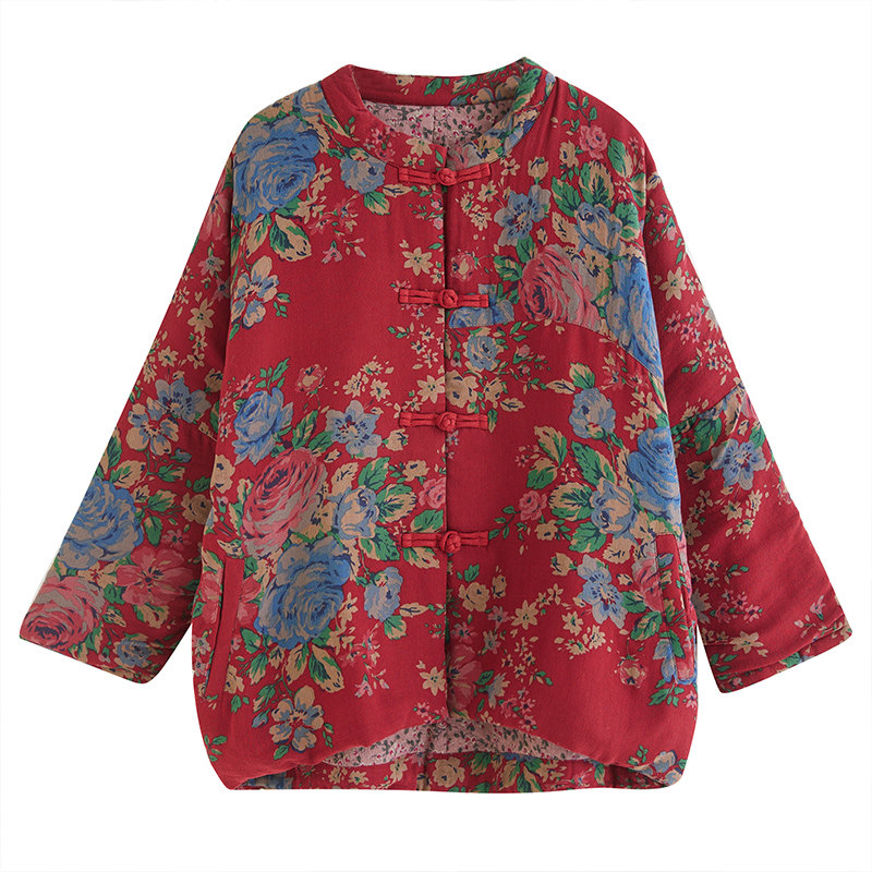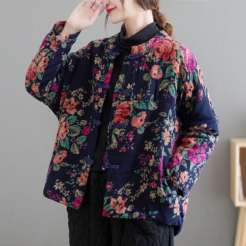 Этническая короткая зимняя куртка, ретро утепленный стеганый пуховик, этнический стиль, китайский стиль