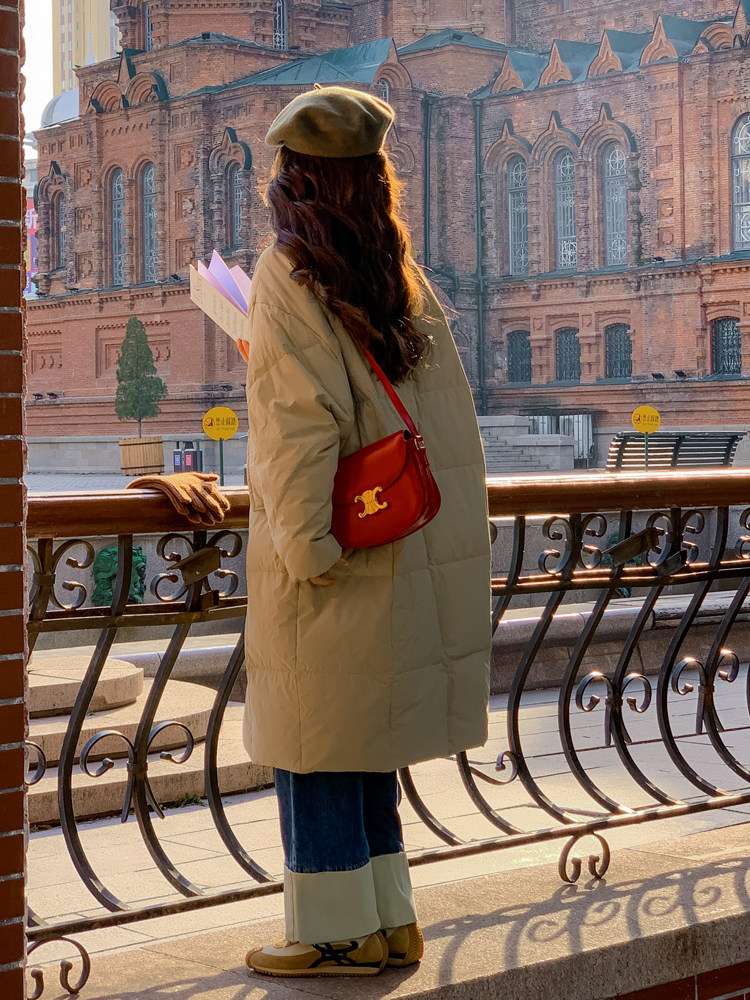 Зимний ретро пуховик с пухом, длинная куртка, коллекция 2023, средней длины, длина макси