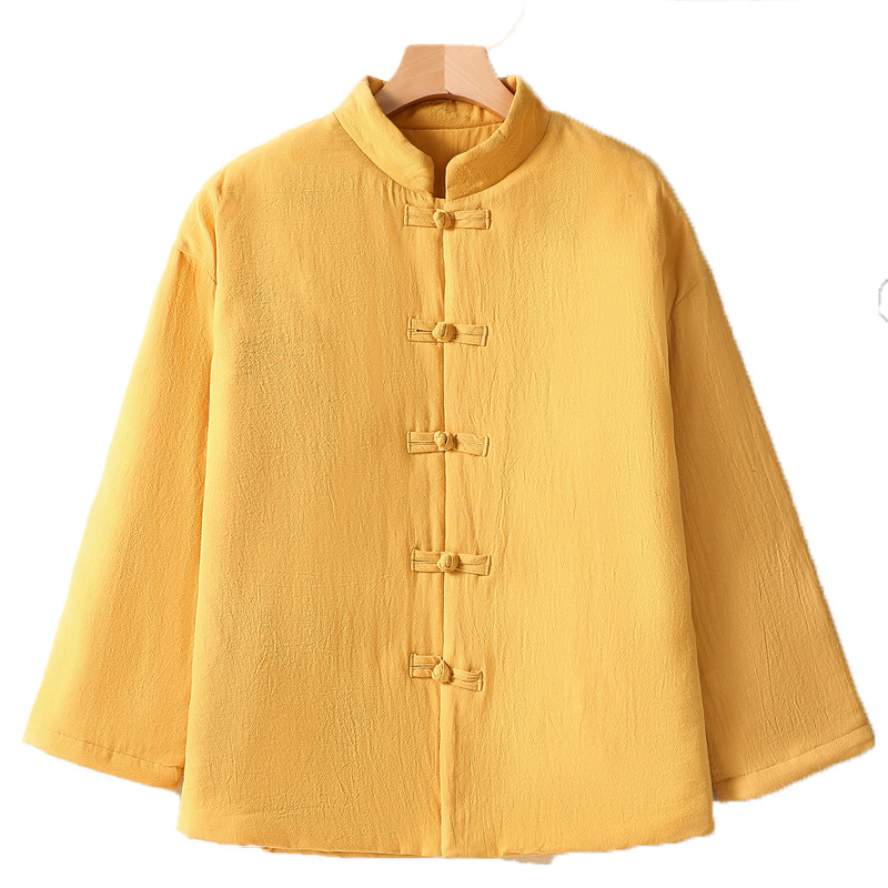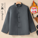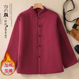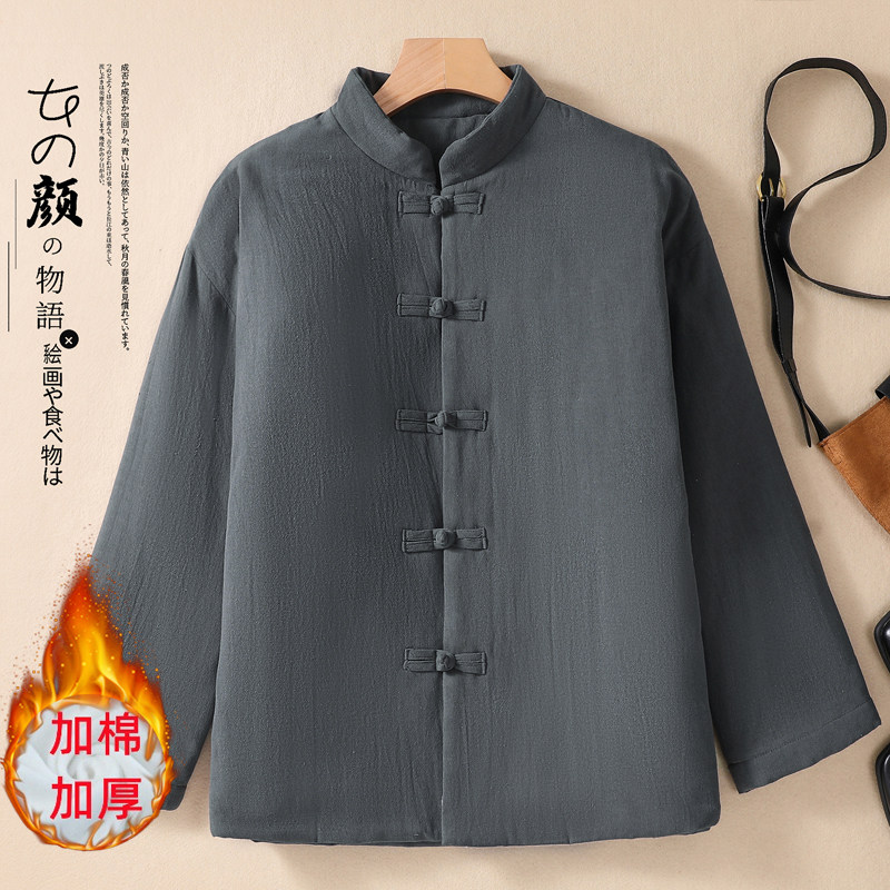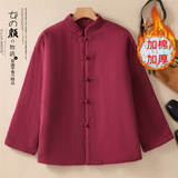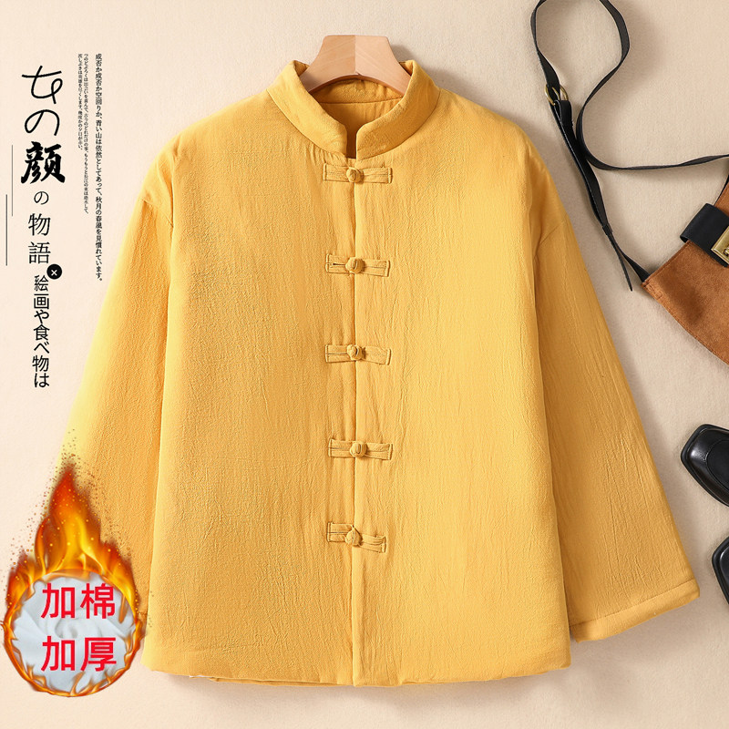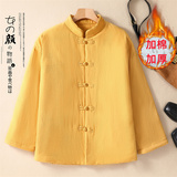 Ретро демисезонный стеганый пуховик, куртка, китайский стиль, из хлопка и льна, большой размер, увеличенная толщина