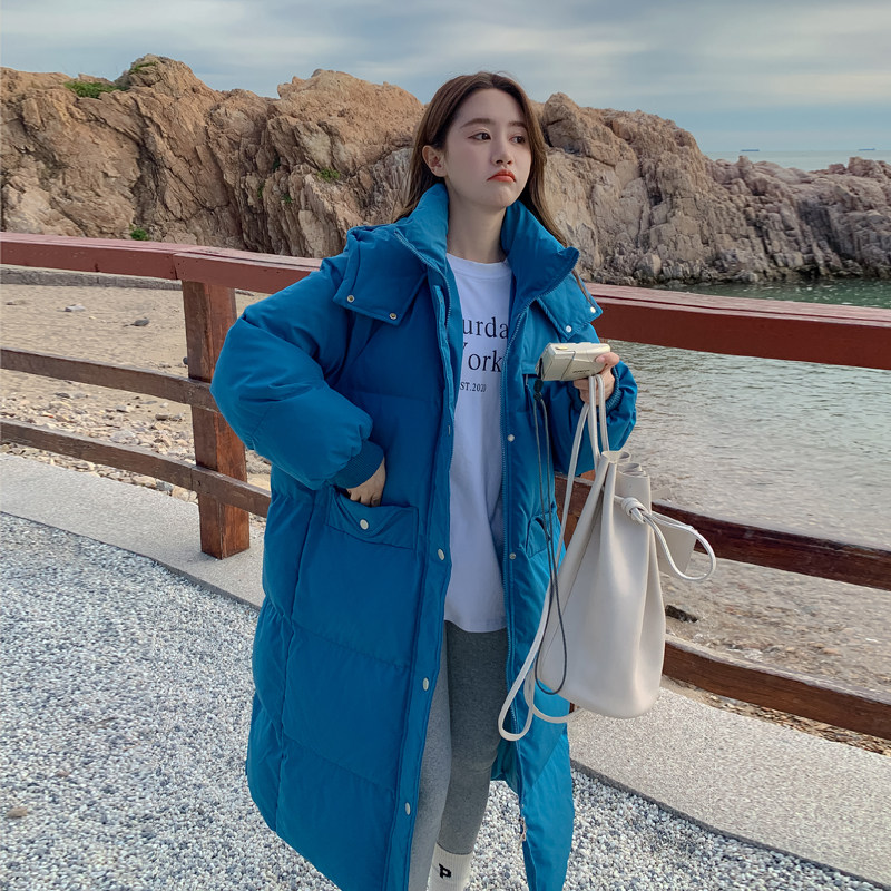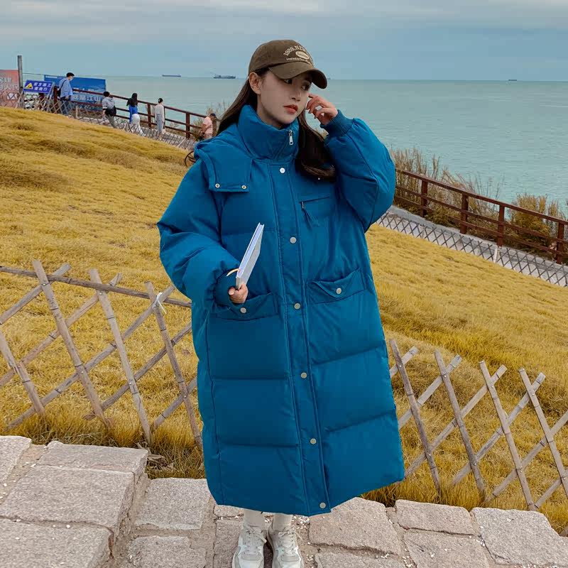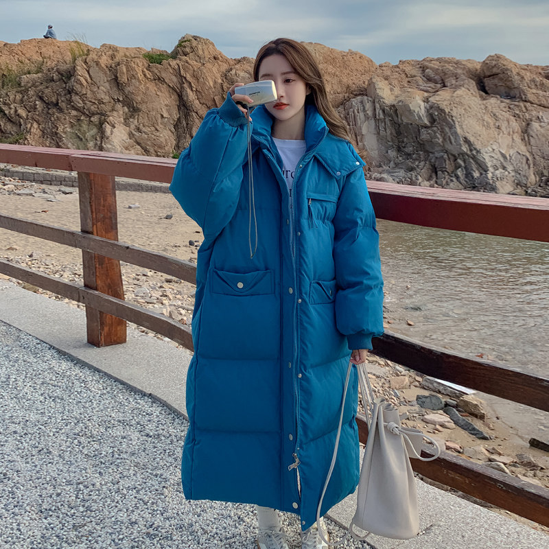 Синий длинный пуховик с пухом, куртка, ветрозащитный комплект, коллекция 2022, оверсайз, увеличенная толщина