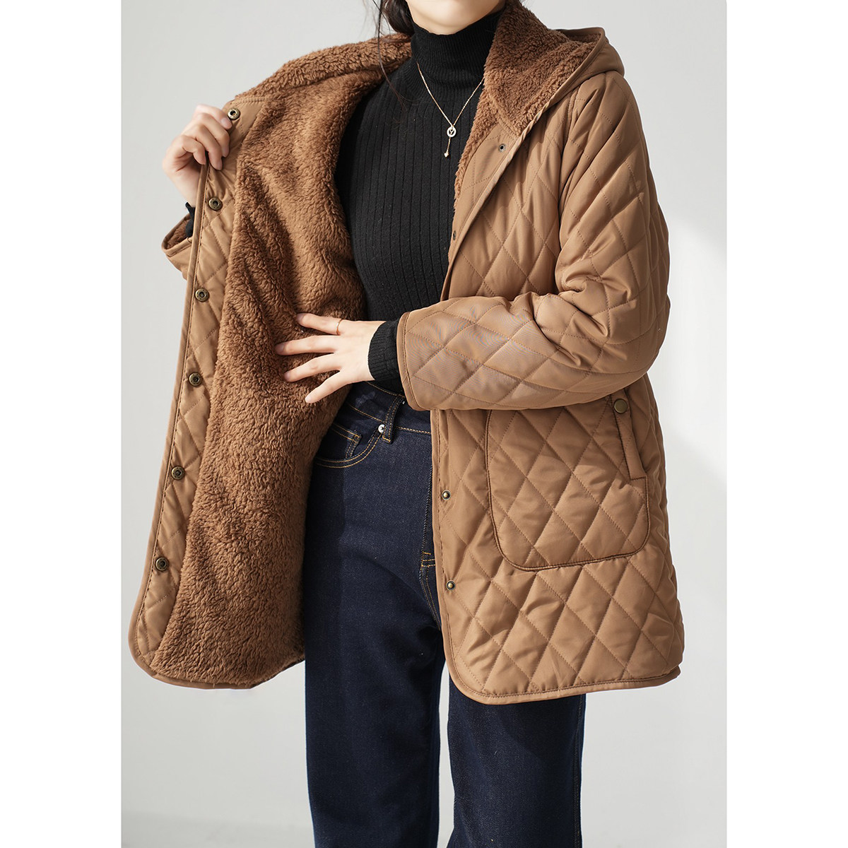 Стеганый длинный утепленный пуховик с капюшоном, удерживающая тепло демисезонная куртка, средней длины, городской стиль