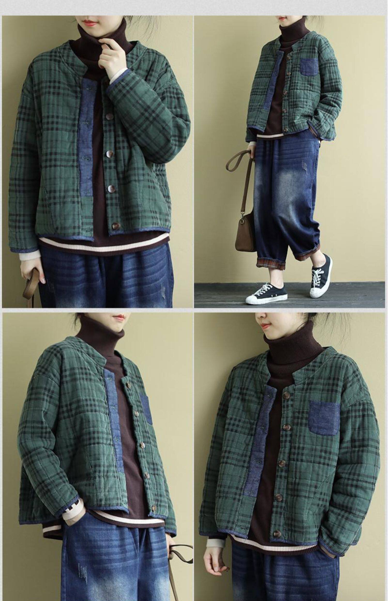 Утепленная ретро стеганая куртка, большой размер