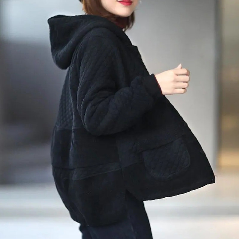 Демисезонный пуховик, толстовка с капюшоном для отдыха, кардиган, большой размер, в западном стиле