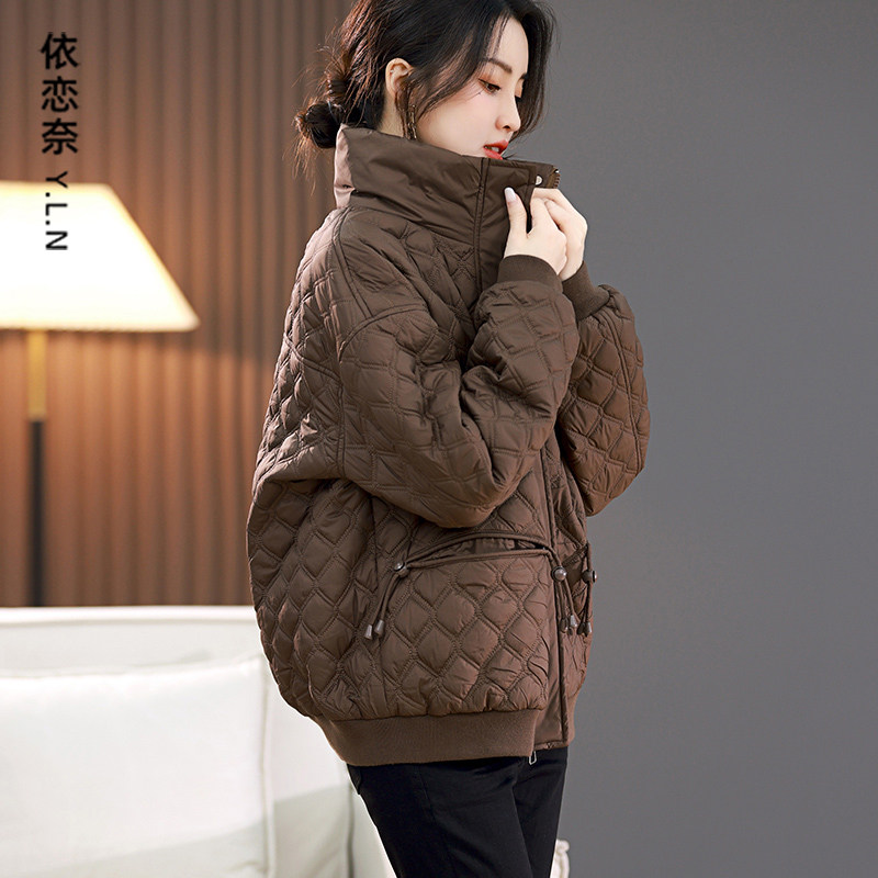 Короткий зимний пуховик, легкая и тонкая стеганая куртка с пухом с ромбовидным узором, коллекция 2023, подходит для подростков