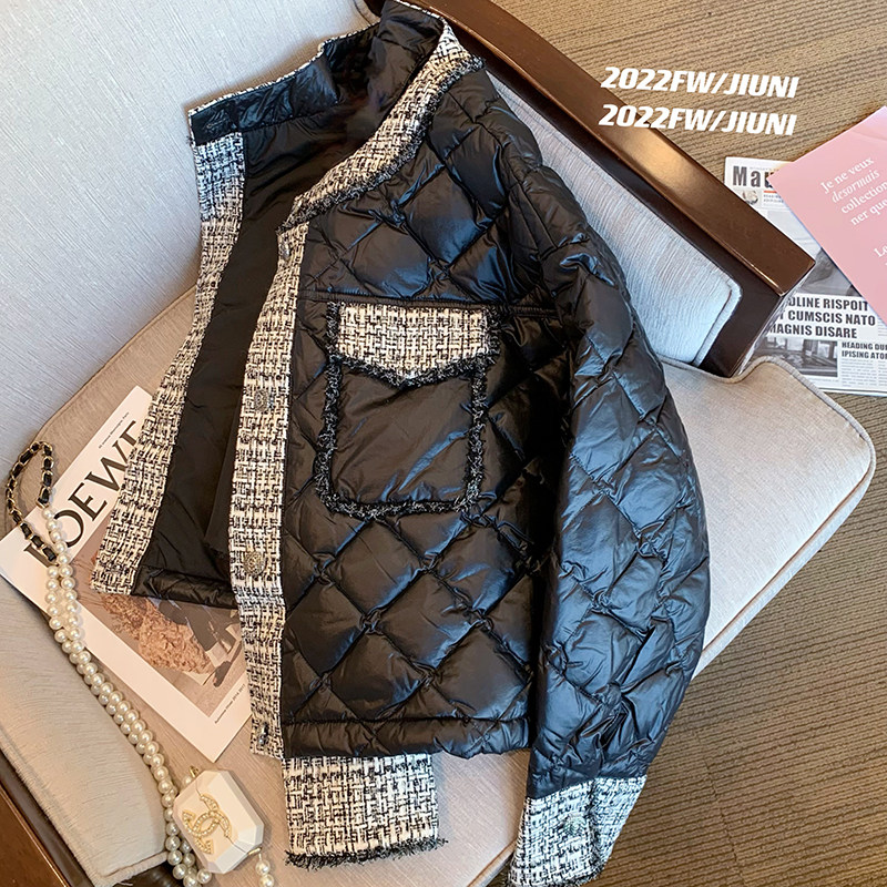 Зимний черный дизайнерский утепленный пуховик с ромбовидным узором, куртка, в стиле Шанель, тренд сезона