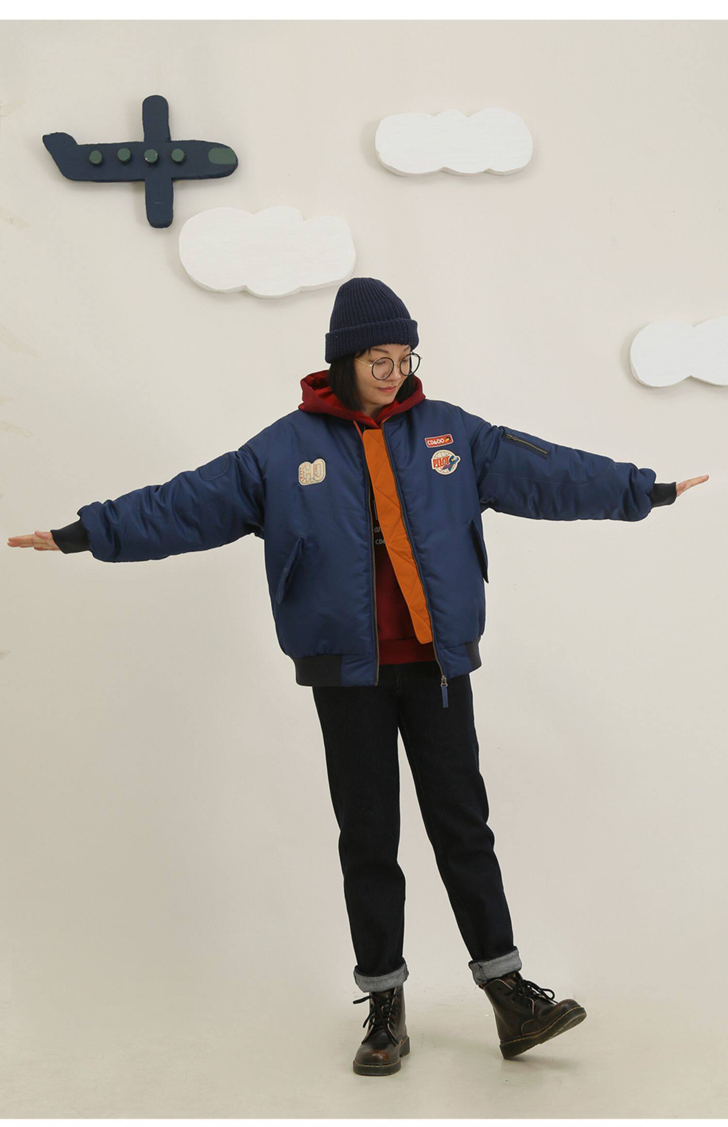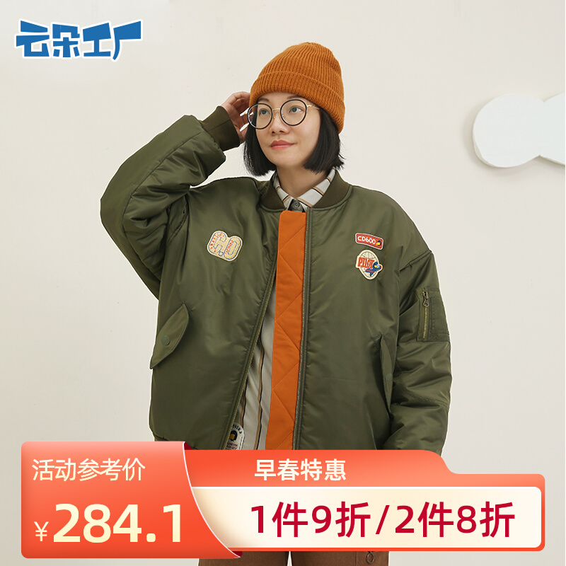 云朵工厂 Динозавр, значок, зимняя куртка, бейсбольная форма, дорожная версия, свободный крой, женский стиль