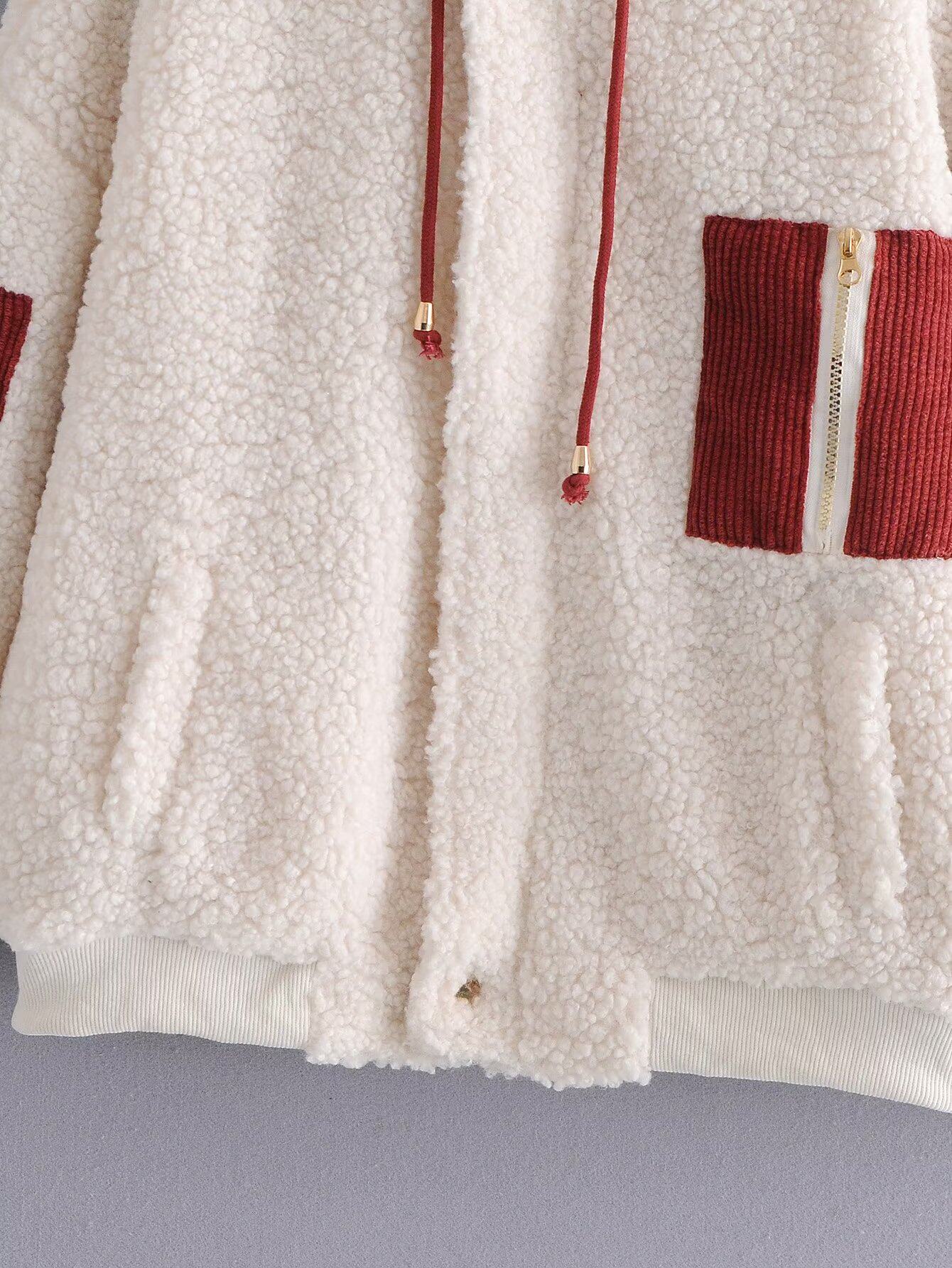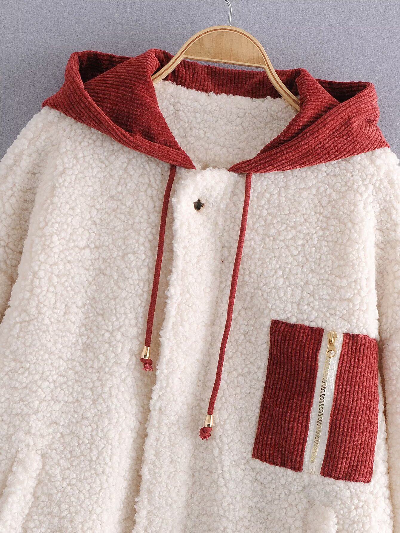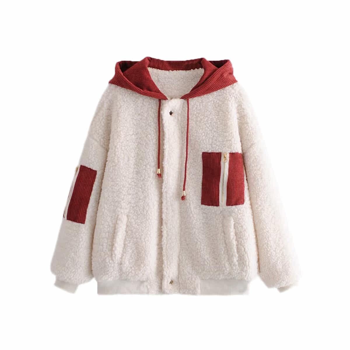 Kaslead New Women's European и American Style, цветовые ягнят, жареный ватный ватный пиджак с длинными капюшонами.
