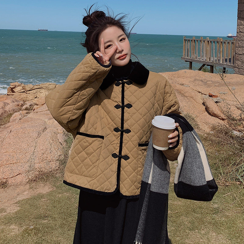 Хаки зимний пуховик с ромбовидным узором с пухом, ретро куртка, коллекция 2022, в корейском стиле, оверсайз, увеличенная толщина