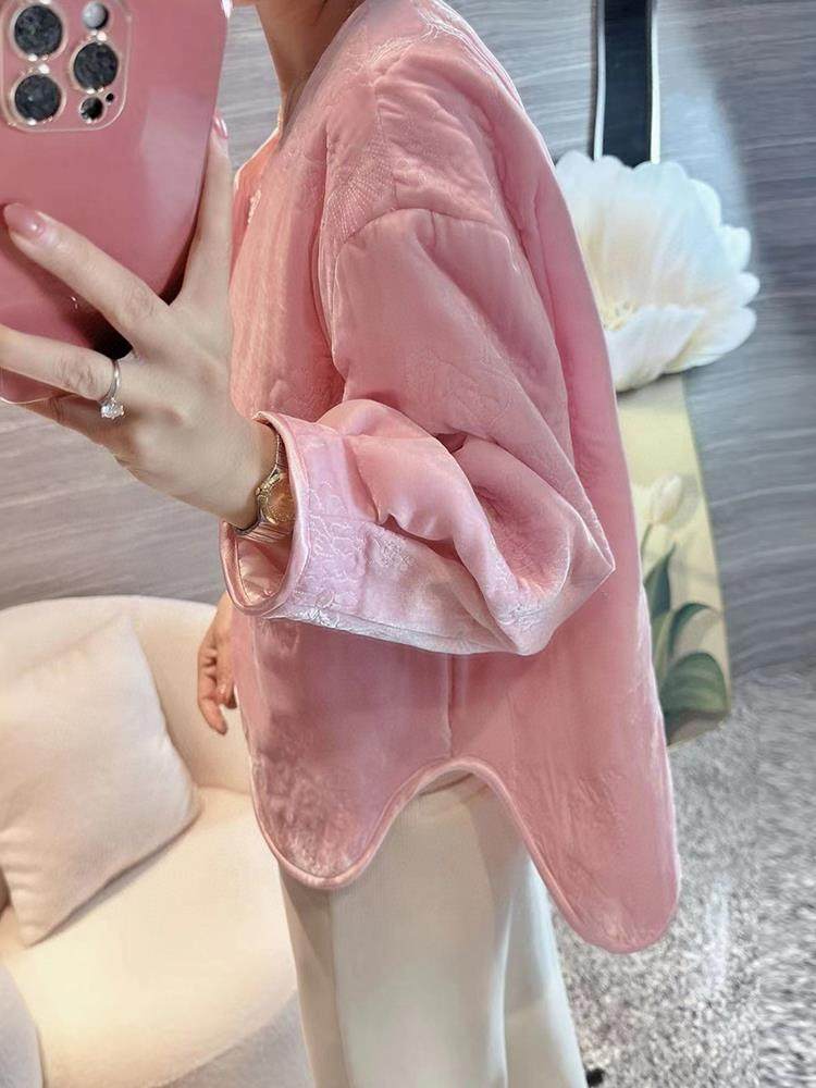 Шелковый бархатный легкий и тонкий пуховик, стеганая розовая куртка