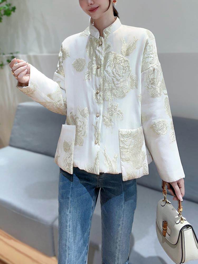 Элитный легкий и тонкий шелковый пуховик, стеганая куртка, в цветочек, свободный крой