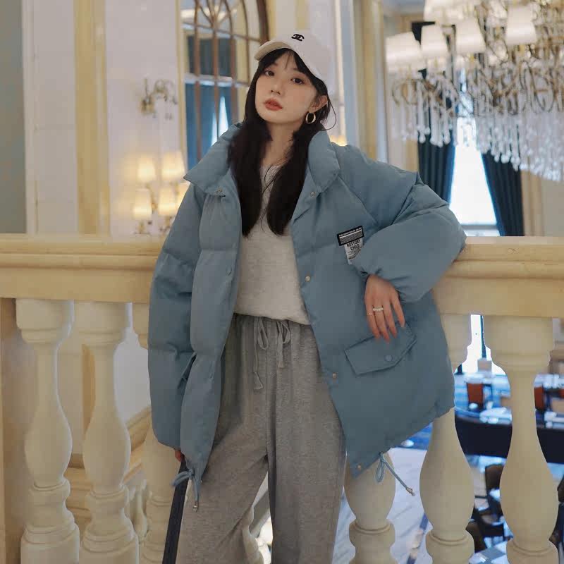 Синий зимний пуховик с пухом, куртка, в корейском стиле, оверсайз