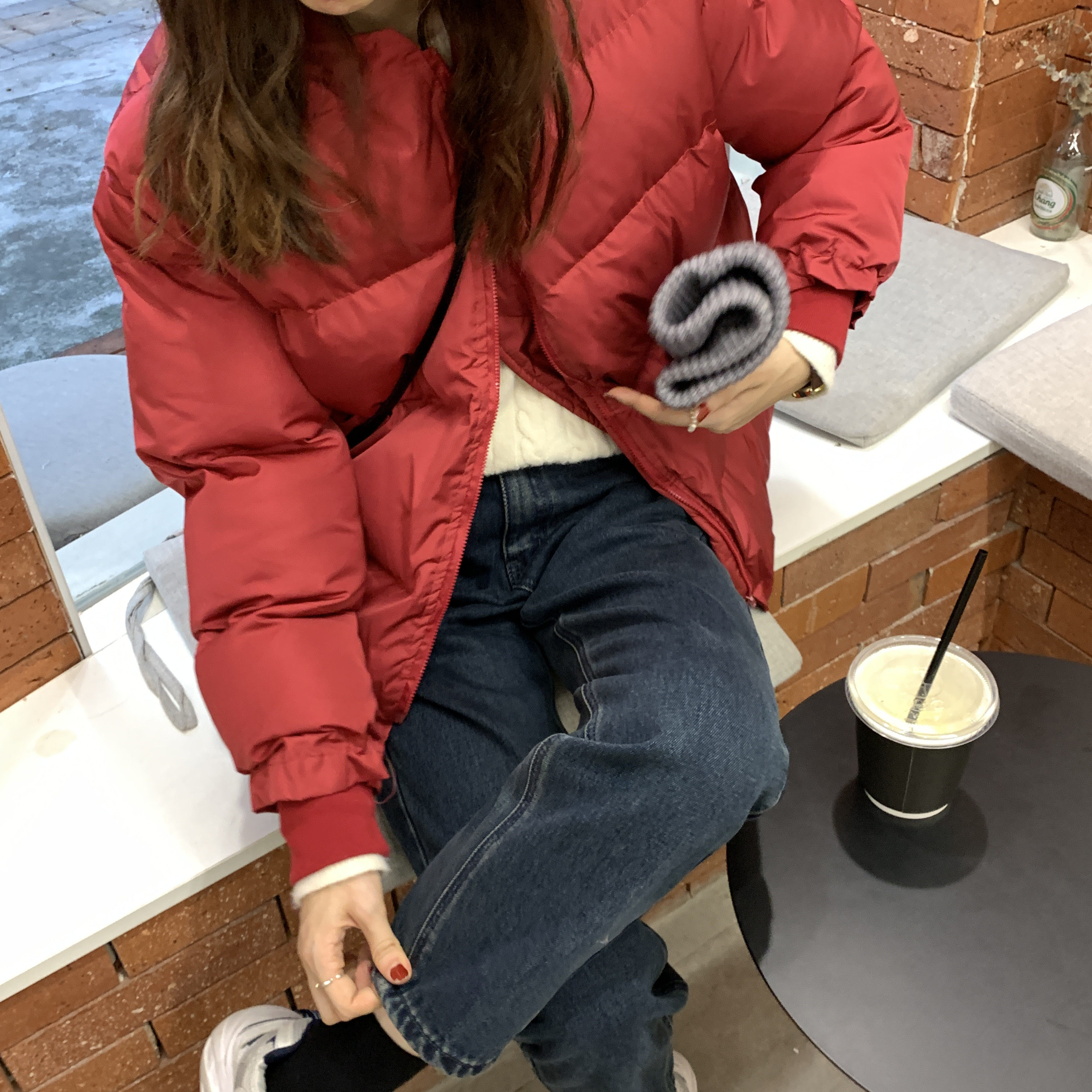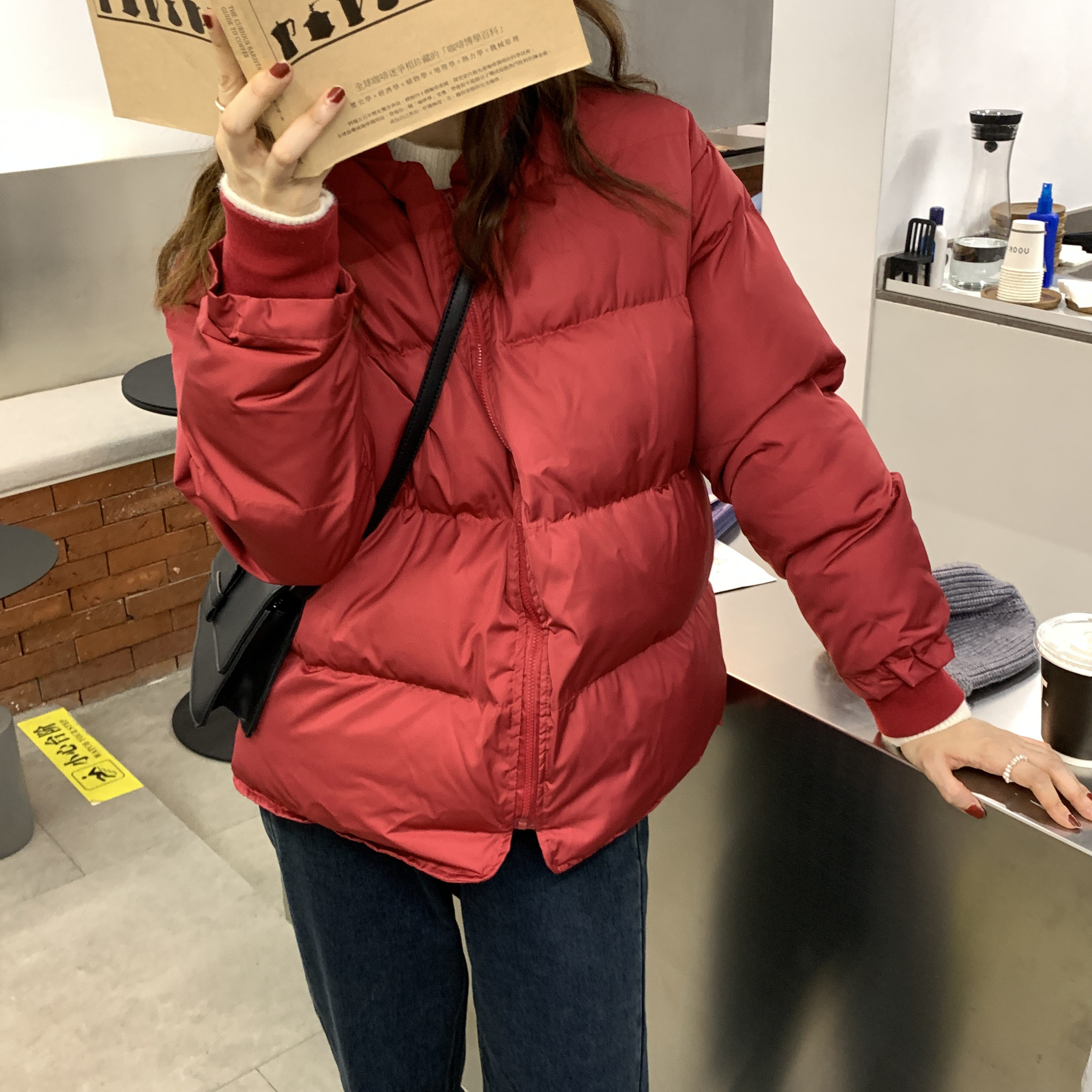 Модный красный пуховик для школьников и студентов, куртка, коллекция 2023, в корейском стиле, увеличенная толщина