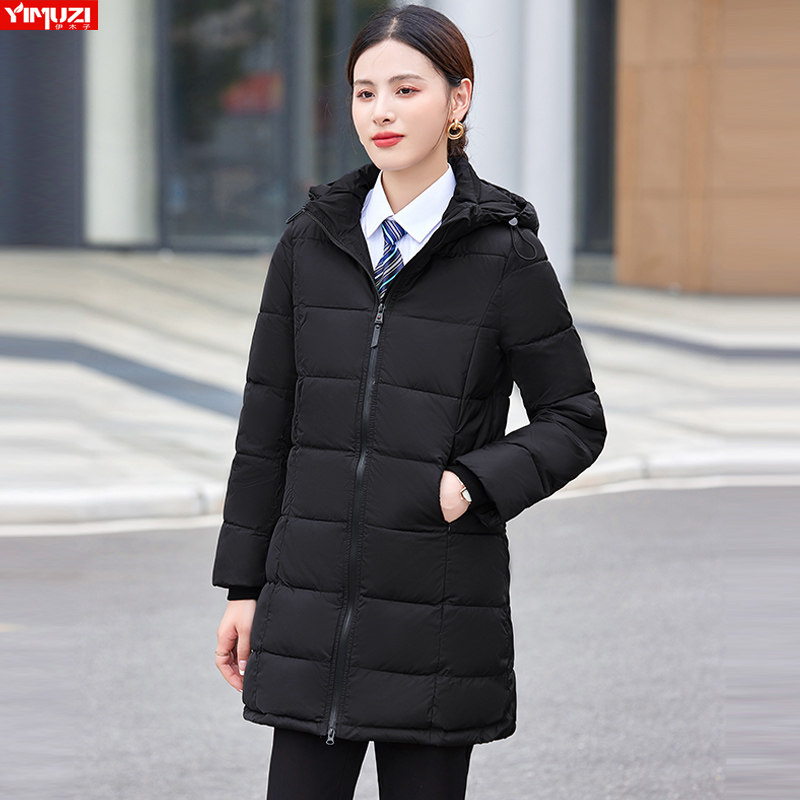 Черный демисезонный пуховик, модная длинная зимняя куртка с капюшоном для работы, коллекция 2022, в корейском стиле, средней длины