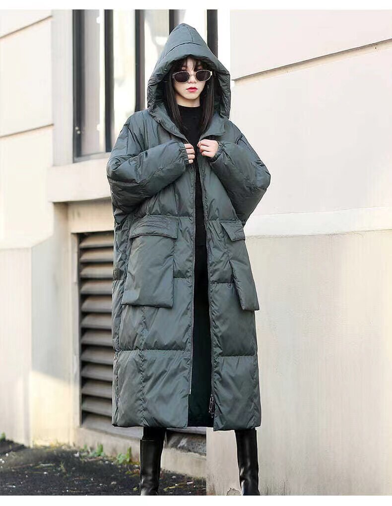 Элитный пуховик с пухом, модные джинсы с начесом, длинная толстовка с капюшоном, куртка, большой размер, свободный прямой крой, в западном стиле
