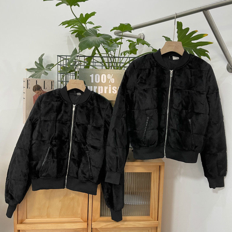 Короткий бейсбольный бархатный пуховик, комплект, городской стиль