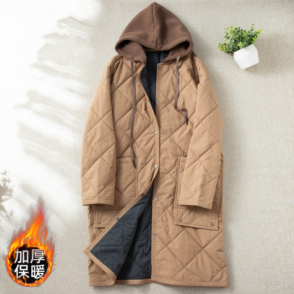 Японский стеганый утепленный легкий и тонкий пуховик с капюшоном с ромбовидным узором с пухом, куртка