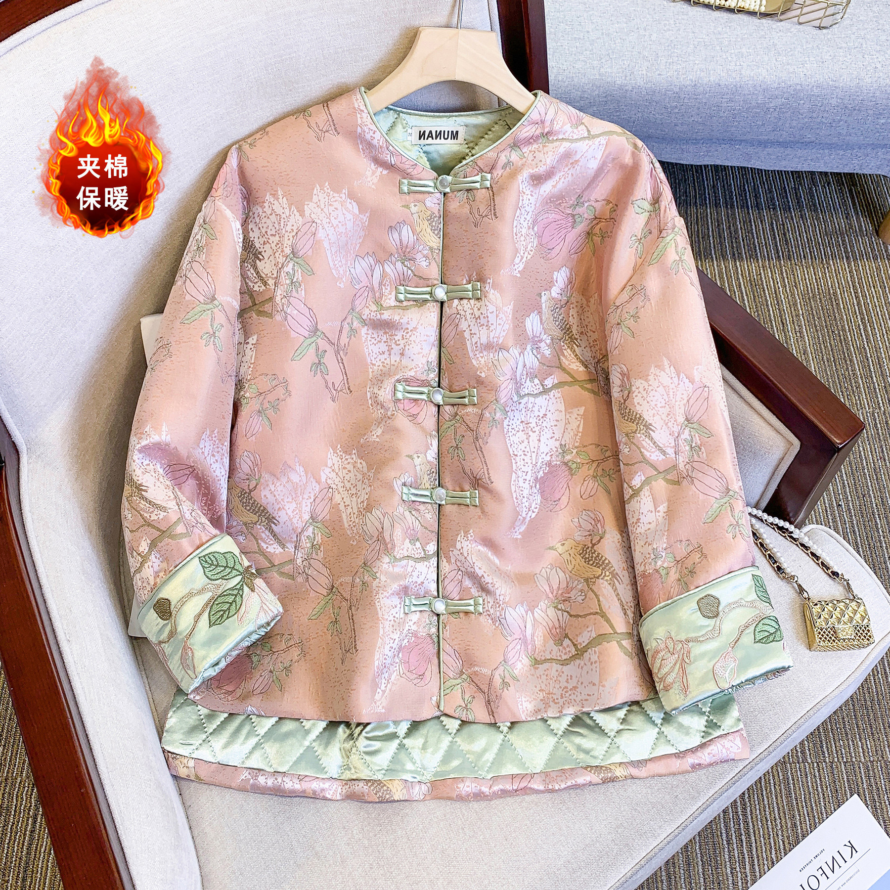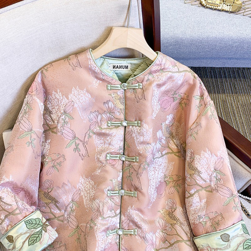 Этническая куртка с круглым воротником, зимний стеганый пуховик, этнический стиль, китайский стиль, с вышивкой