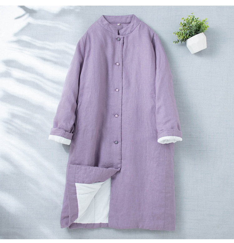 Брендовый легкий и тонкий длинный пуховик, удерживающая тепло стеганая куртка, китайский стиль, средней длины, из хлопка и льна