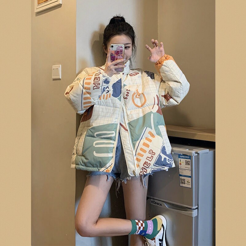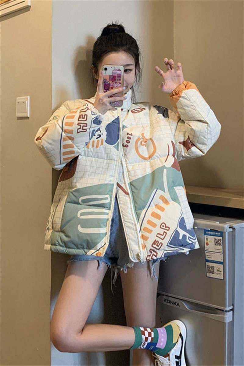 Демисезонный пуховик, куртка, в западном стиле, в корейском стиле, яркий броский стиль, оверсайз